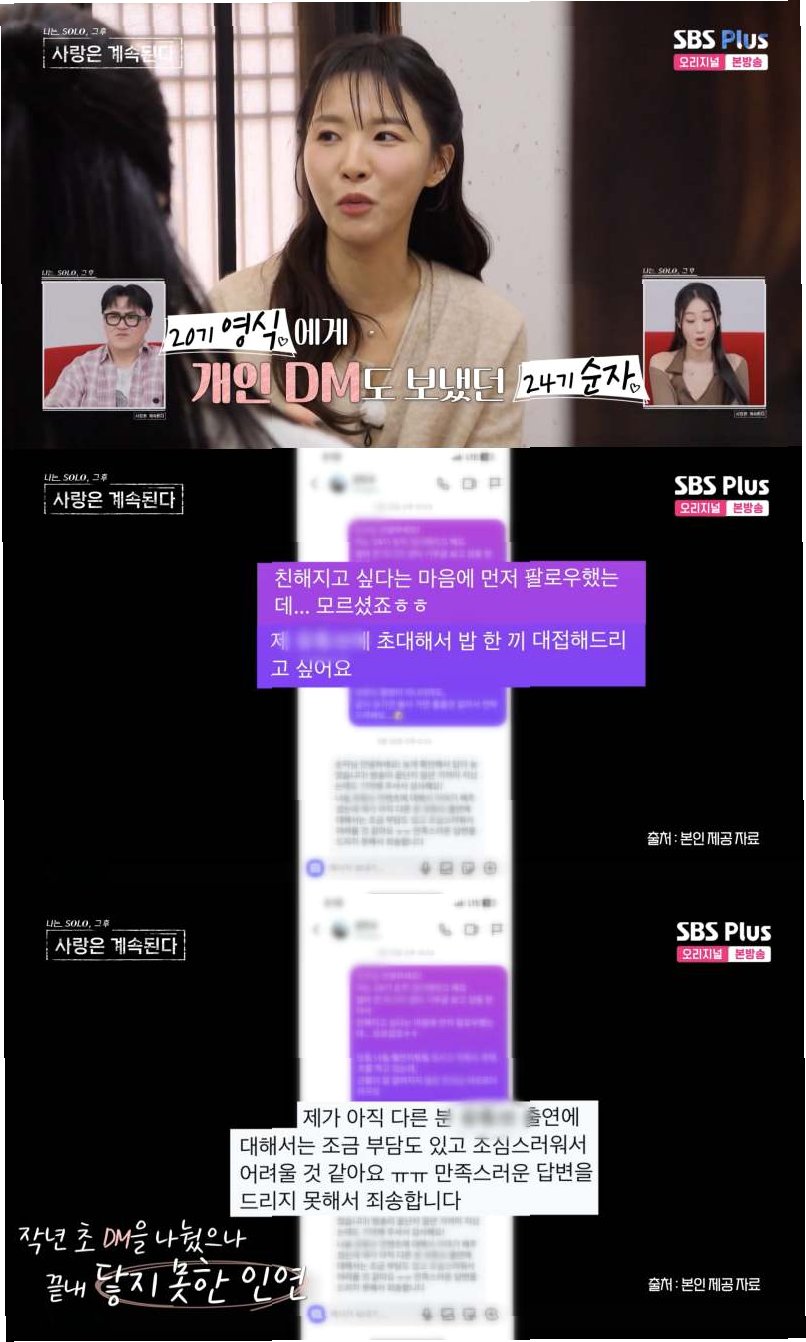 ‘나는 솔로’ 20기 영식이 ‘최종 커플’이었던 20기 현숙과의 결별 사실을 밝혔다그는 오는 12일 방송되는 ENA, SBS Plus ‘나는 SOLO, 그 후 사랑은 계속된다’(이하 ‘나솔사계’)에서 새로운 사랑 찾기에 나선다‘솔로민박’에 입소한 영식은 2년 전 출연 당시보다 10kg을 감량했다고 밝히며 훈훈해진 비주얼을 자랑했다그는 현숙과의 관계에 대해 “(방송 후) 실제로 만나다가 인연이 아니어서 헤어졌다”고 덤덤하게 고백했다이번에는 한 사람에게만 직진하기보다 여러 사람을 알아보고 싶다는 진중한 마음가짐을 드러냈다.