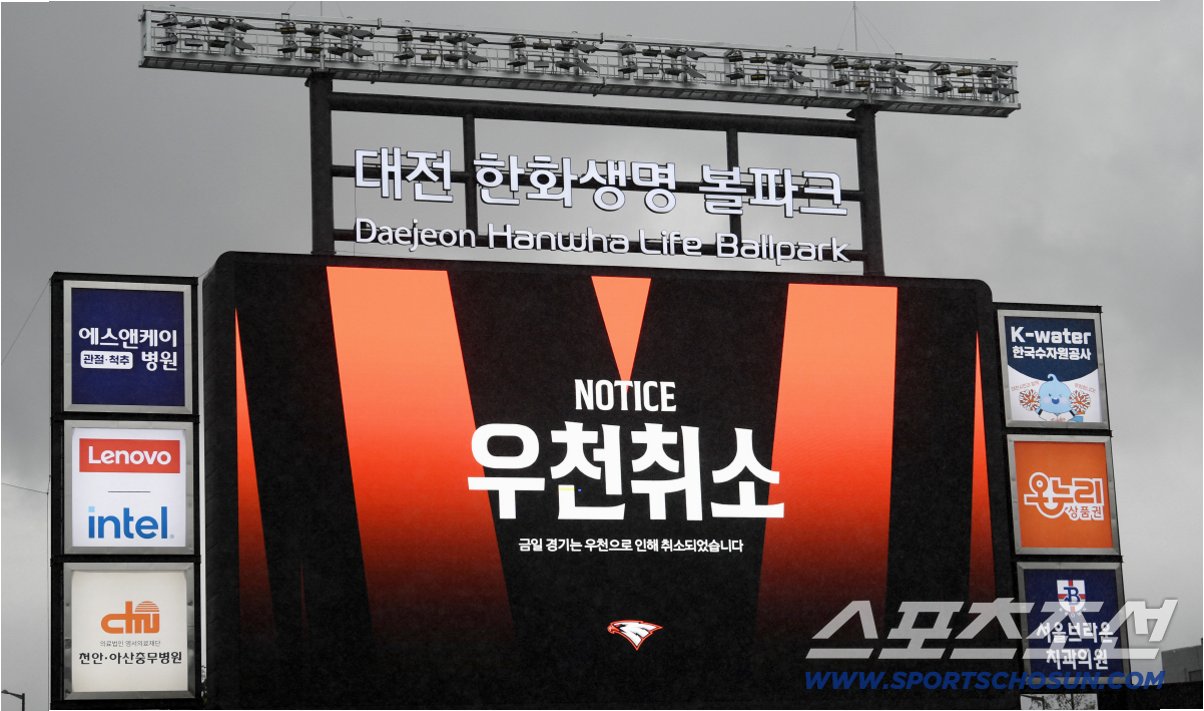 A.경기 감독관은 기상청 예보를 바탕으로 1시간 지연 개시를 결정했지만, 예상과 달리 빗줄기가 다시 굵어지면서 안전을 고려하여 우천 취소를 결정했습니다.