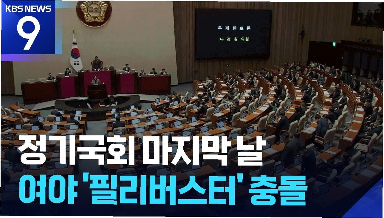 정기국회 마지막 날, 나경원 의원의 필리버스터 중단을 둘러싸고 여야 간의 극심한 갈등이 발생했습니다. 국회법 위반 여부를 두고 공방이 벌어졌으며, 자정 자동 산회를 앞두고 필리버스터는 종료될 것으로 보입니다.