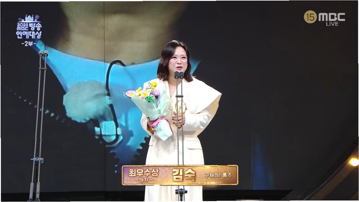 방송인 김숙이 2025 MBC 방송연예대상에서 '구해줘! 홈즈'로 여자 최우수상을 수상하며 감격스러운 소감을 밝혔습니다. 데뷔 30주년을 맞이한 김숙은, 스무 살에 방송국에 입사하여 오십이 된 자신의 긴 여정을 되돌아보며, 많은 이들의 축하에 감사를 표했습니다. 어젯밤만 해도 참석을 할까 말까 고민했지만, 상을 받게 되어 기쁘다는 진심을 전했습니다. 그녀는 또한, 자신의 오랜 방송 경력 동안 곁에서 힘이 되어준 많은 사람들에게 잊지 않고 감사의 마음을 전했습니다. 김숙의 수상은 그녀의 30년 방송 인생을 되돌아보고, 앞으로의 활동을 기대하게 만드는 특별한 순간이었습니다.