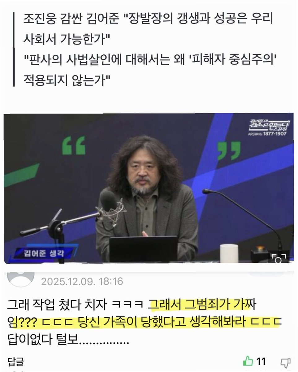 김어준의 '소년범 갱생'에 대한 옹호적 시각