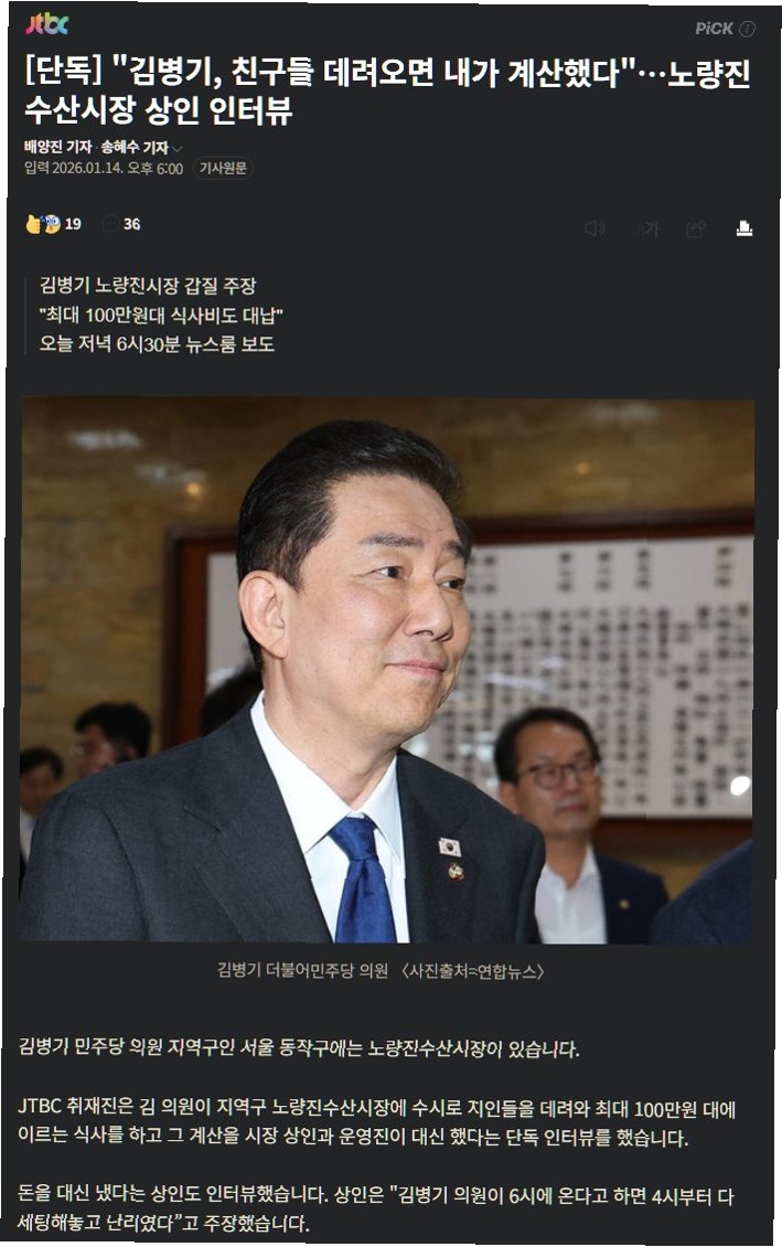 JTBC 단독 보도를 통해 김병기 의원이 노량진 수산시장에서 100만원이 넘는 식사를 하고, 그 비용을 상인들이 대납했다는 의혹이 제기되었습니다. 이 사건은 정치권에 큰 파장을 일으킬 것으로 예상되며, 진실 규명을 위한 철저한 조사가 필요합니다. 해당 의혹은 단순한 금전적 문제를 넘어, 정치인과 지역 상인 간의 유착 관계를 보여주는 것으로, 공정성과 투명성을 훼손하는 심각한 문제입니다.