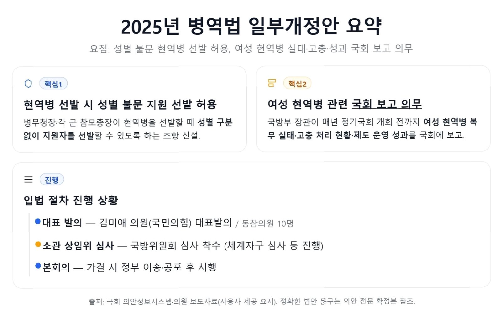병역법 개정안의 주요 내용: 여성 현역병 복무 허용