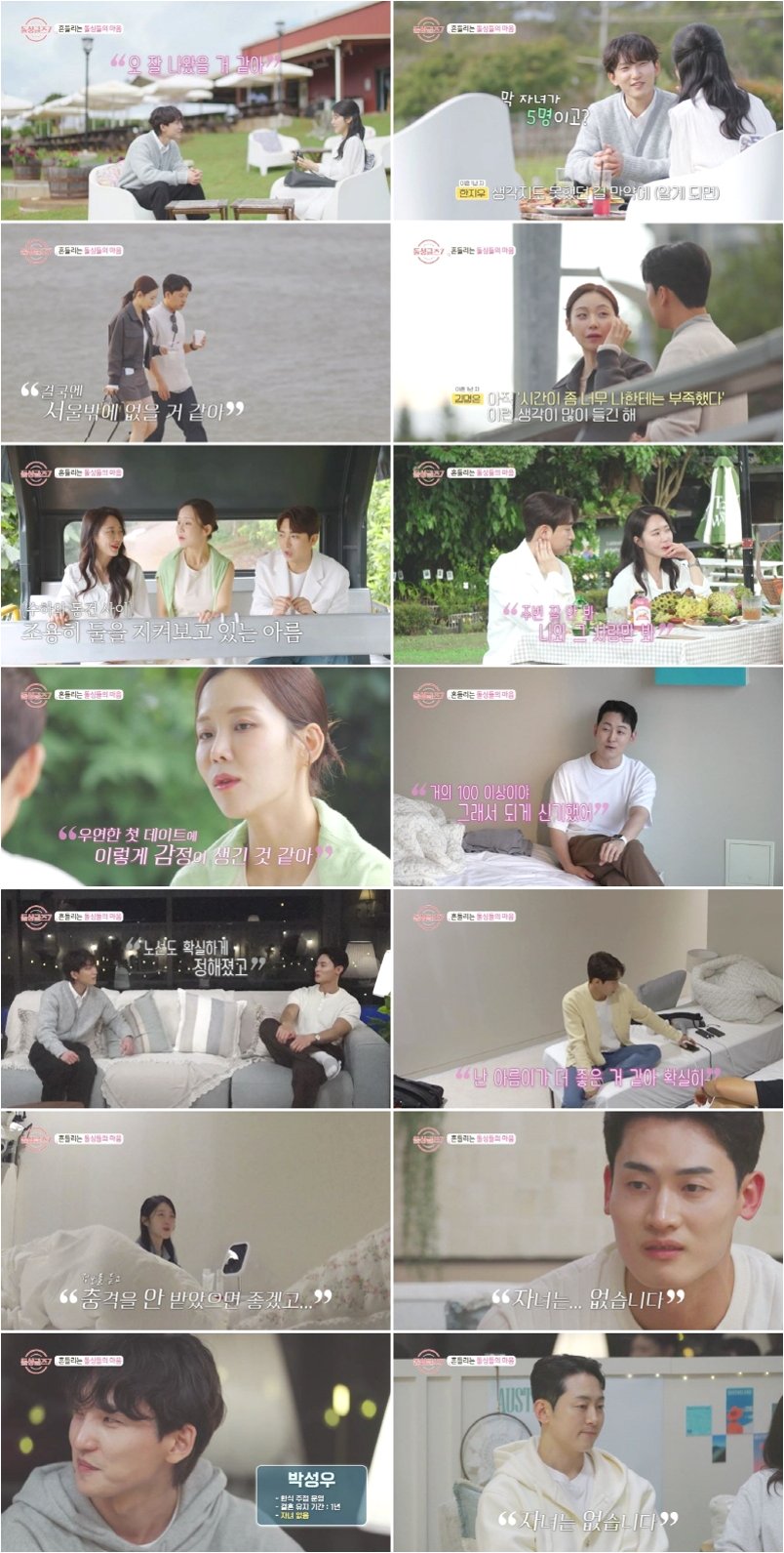 3일 차 밤, 남자들의 ‘자녀 유무’가 공개되면서 예상치 못한 반전이 일어났습니다다섯 명 모두 자녀가 없는 것으로 밝혀진 것입니다희종, 인형, 성우, 도형, 동건은 각자의 결혼 유지 기간과 함께 자녀 유무를 밝혔습니다특히, 동건은 결혼 유지 기간이 한 달 미만이라고 밝혀 모두를 놀라게 했습니다이러한 상황은 돌싱녀들의 러브라인에 큰 영향을 미칠 것으로 예상됩니다과연 여자 출연자들은 '무자녀'라는 조건에 어떤 반응을 보일까요? 그리고 이들이 어떤 선택을 할까요?