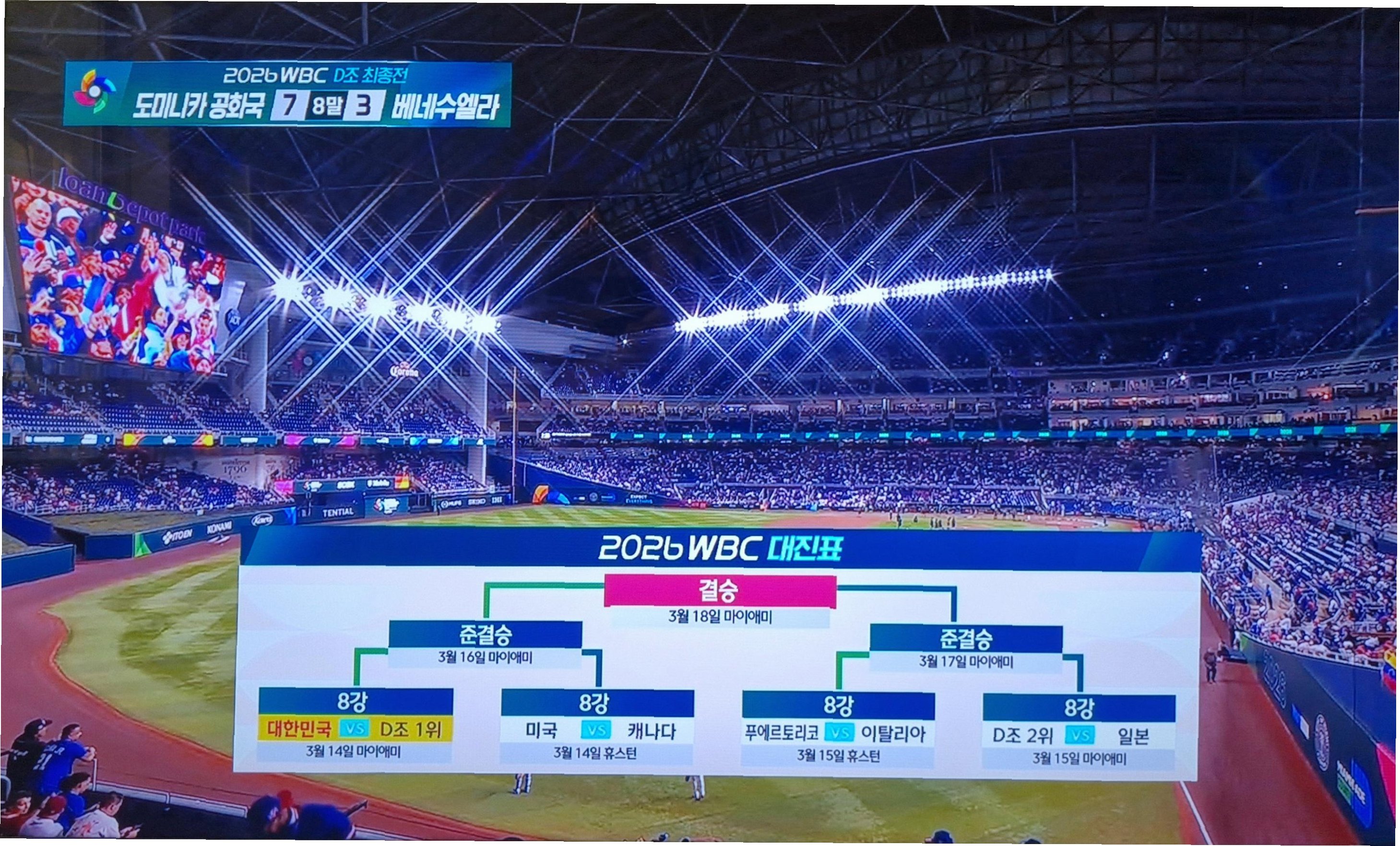 A.대한민국은 8강에서 도미니카공화국을 상대합니다. 만약 승리하더라도 준결승에서 미국을 만날 가능성이 있습니다.