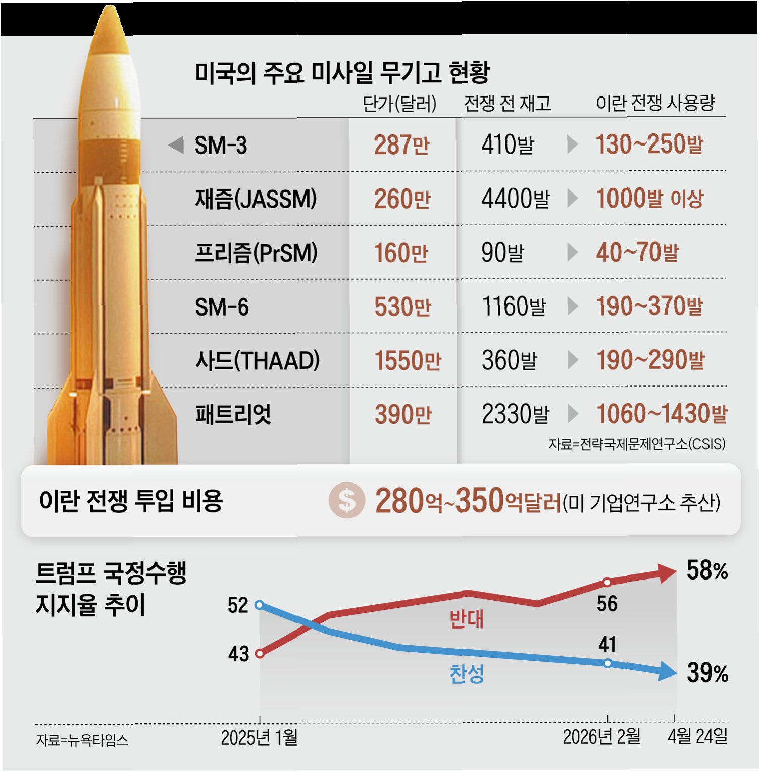 A.이란과의 전쟁 초기 대규모 무기 사용으로 인해 장거리 스텔스 순항미사일 등 첨단 무기 탄약 재고가 심각하게 감소했습니다.