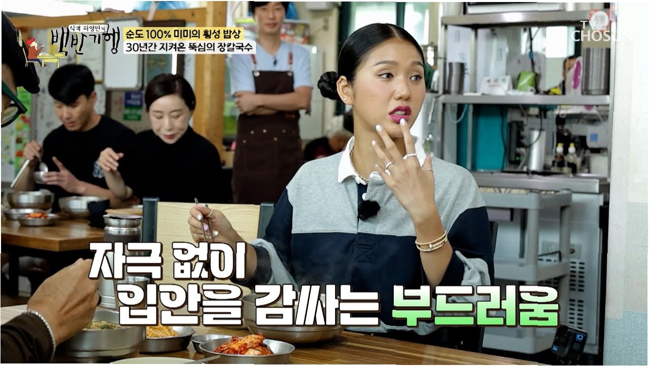 미미는 '백반기행'에서 횡성의 맛있는 음식들을 맛보며, 특유의 유쾌한 입담을 선보였습니다. 허영만이 '음식 탓 안 하잖아'라고 하자, 미미는 '음식이 무슨 죄냐. 제 혓바닥이 죄지'라고 너스레를 떨며 웃음을 자아냈습니다. 또한, 장칼국수를 맛보며 '서울에서 먹던 칼국수랑은 다르지?'라는 질문에 '완전 다르다. 된장국 먹는 것 같기도 하다'라고 답하며 음식에 대한 솔직하고 재치 있는 평가를 내놓았습니다. 미미는 음식에 대한 묘한 매력에 빠진 듯한 모습을 보이며 시청자들의 식욕을 자극했습니다.
