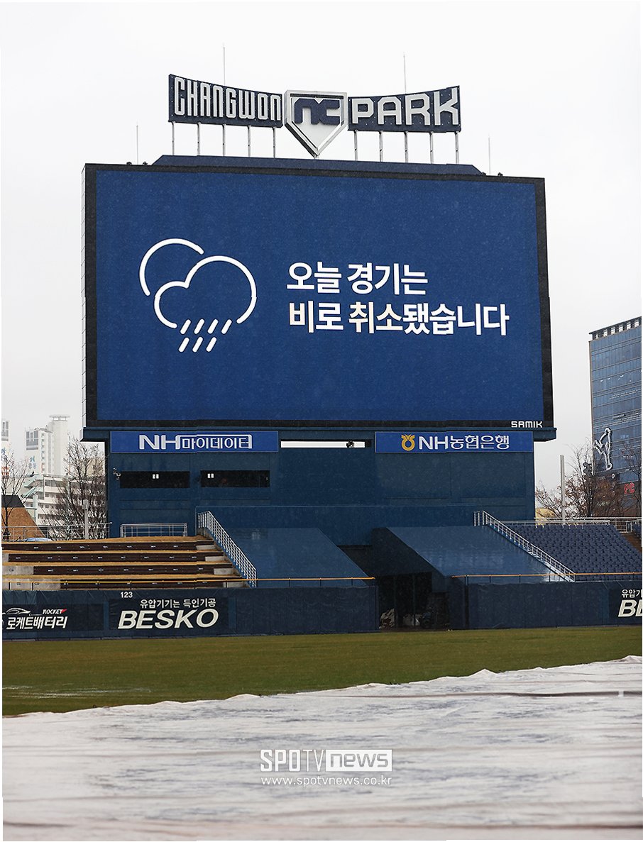 A.경기 시작 전부터 쏟아진 폭우로 인해, 안전을 고려하여 취소되었습니다.