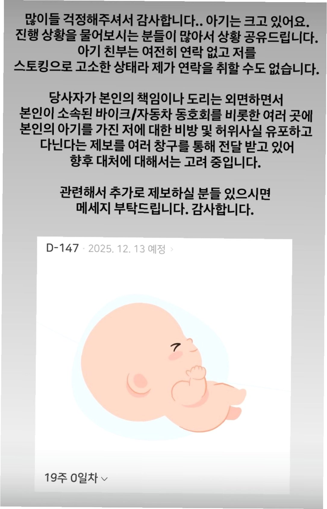 A.A씨 측은 서민재의 허위 게시물로 인해 명예와 인격이 훼손되었다고 주장하며, 법적 조치를 취할 예정입니다. 잠적한 사실이 없으며, 아이에 대한 법적 책임을 다하겠다는 입장을 유지하고 있습니다.