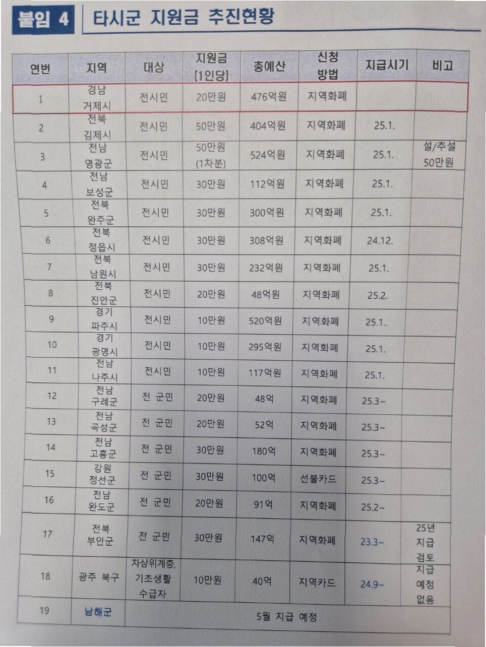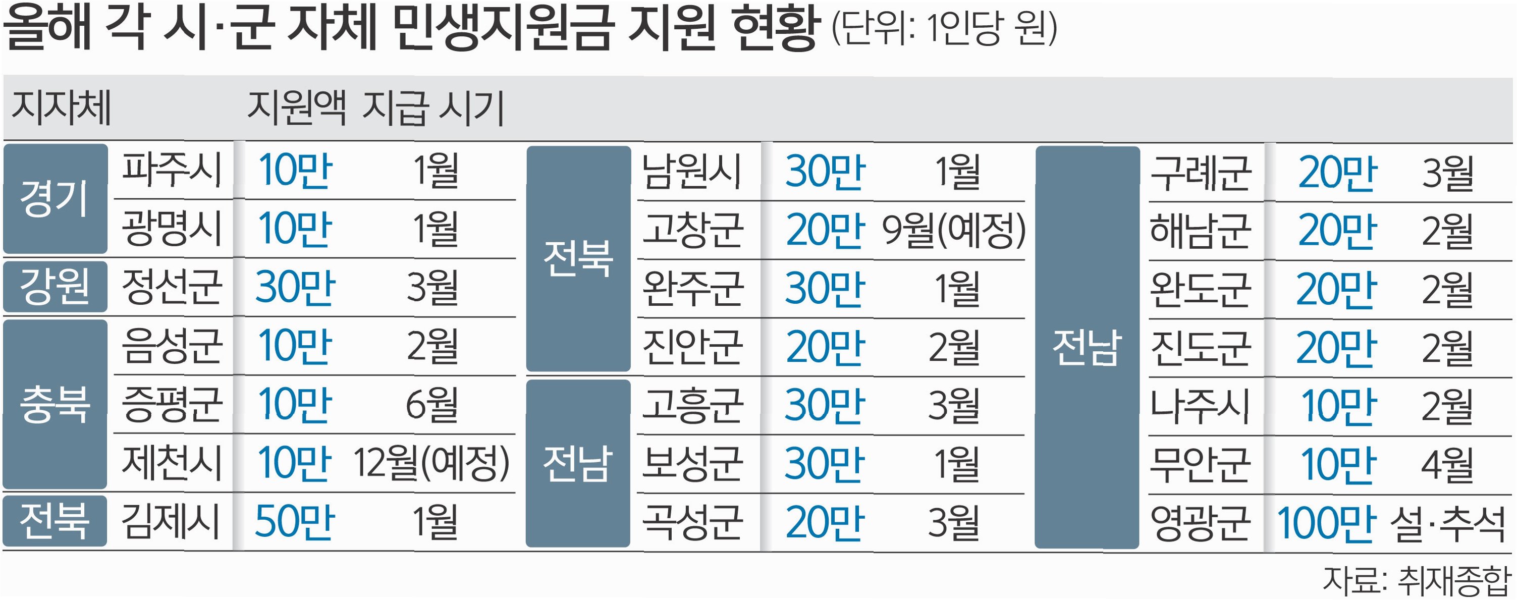 영동군, 괴산군, 남원시… 각 지자체별 지원금 규모와 사용처는?