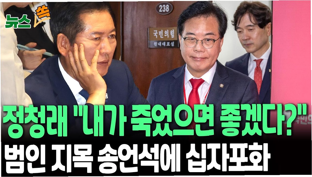 전날 정 대표가 “노상원 수첩이 현실로 성공했더라면 이재명 대통령도, 저 정청래도 이 세상 사람이 아니었을 것”이라고 연설하는 대목에서 송 원내대표는 “제발 그렇게 했으면 좋았을 걸”이라고 말하는 게 영상카메라에 포착됐다.