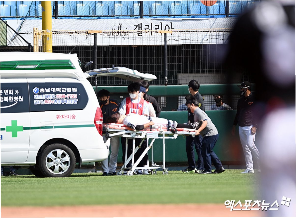 A.현재 김태연 선수는 응급실에서 정밀 검사를 받고 있으며, 부상 정도는 아직 정확히 밝혀지지 않았습니다. 검사 결과에 따라 회복 기간과 복귀 시기가 결정될 것입니다.