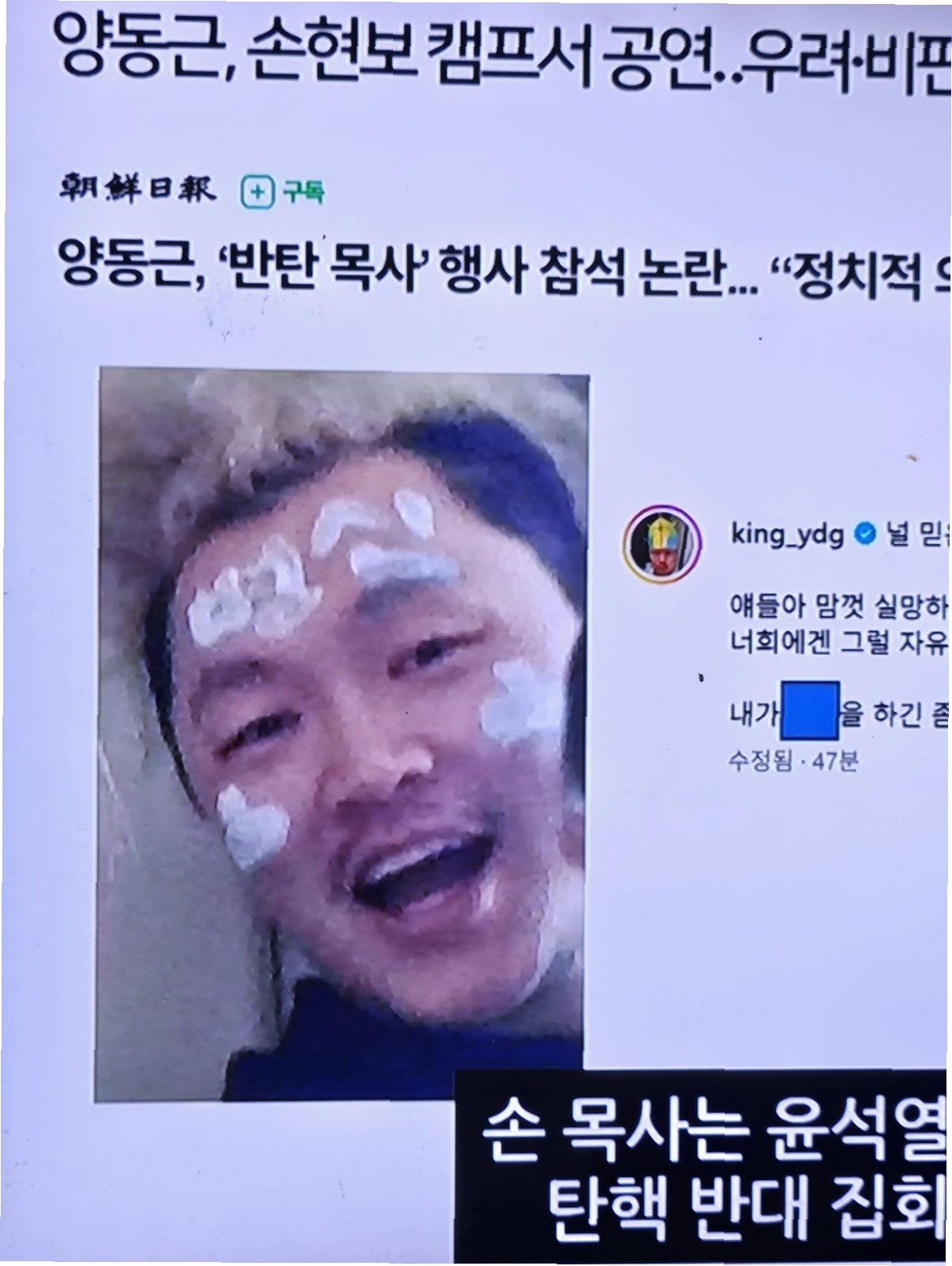 가수 겸 배우 양동근이 정치적 논란에 휩싸였습니다. 윤석열 전 대통령 탄핵 반대 집회를 주도한 손현보 목사가 주최한 행사에 참석하면서, 그의 정치적 성향을 둘러싼 갑론을박이 시작되었습니다. 이는 그가 그동안 보여주었던 대중적 이미지와는 상반된 행보로, 팬들과 대중에게 적잖은 충격을 안겨주었습니다. 특히, 해당 행사가 보수적인 기독교 단체와 연관되어 있다는 점이 논란을 더욱 증폭시켰습니다.