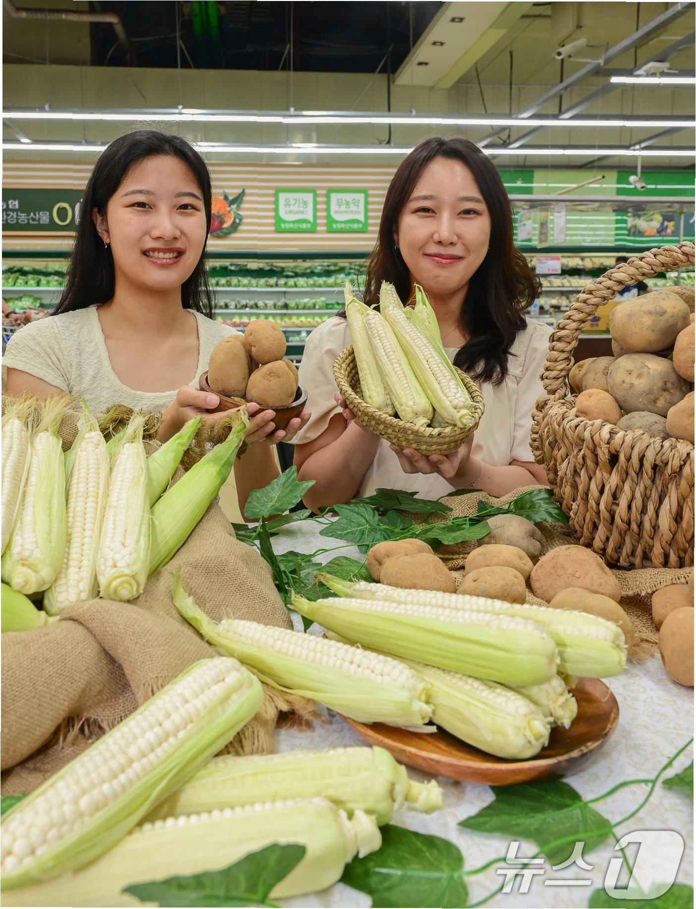 농협유통이 추천하는 여름철 건강 간식, 감자와 찰옥수수! 저칼로리, 포만감, 혈압 관리, 소화 기능 개선 등 다양한 효능을 가진 감자와 찰옥수수로 건강과 맛을 모두 챙기세요. 쫀득하고 포슬한 매력에 빠져, 시원하고 건강한 여름을 보내세요!
