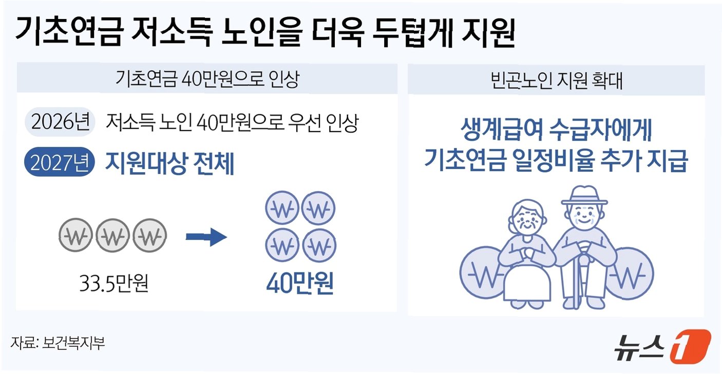2025년 11월 기준 65세 이상 노인 인구는 1079만 5828명으로, 2014년 650만 659명에서 66% 이상 증가했습니다. 기초연금은 노인의 70%가 수급 대상으로 설계되어, 2014년 435만 명이었던 수급자 수는 지난해 701만 명으로 급증했습니다. 올해는 최대 778만 8000명까지 늘어날 수 있다는 전망도 있습니다. 노인 인구 증가는 수급자 수의 지속적인 증가로 이어질 수밖에 없습니다.