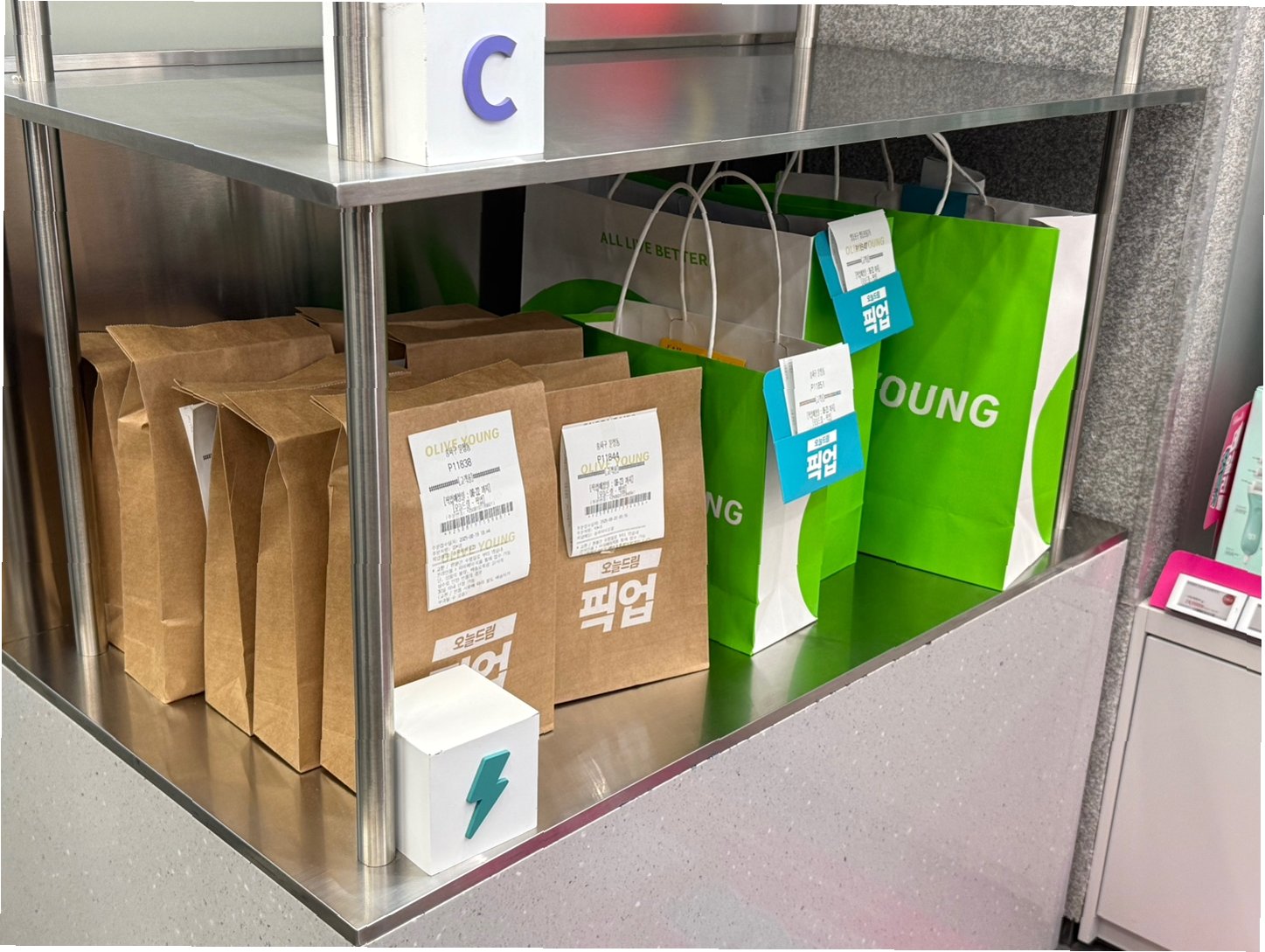 올리브영은 '오늘드림 픽업' 서비스를 통해 고객에게 더욱 편리한 쇼핑 경험을 제공합니다. 온라인 픽업 주문 후 30분 이내에 상품을 수령할 수 있으며, 포장에는 평균 10분도 채 걸리지 않습니다. 매장에서 직접 상품을 확인하고 오늘드림 픽업으로 주문하는 고객도 많습니다. 이러한 고객 중심의 서비스는 올리브영이 퀵커머스 시장에서 성공을 거두는 핵심 요인 중 하나입니다.