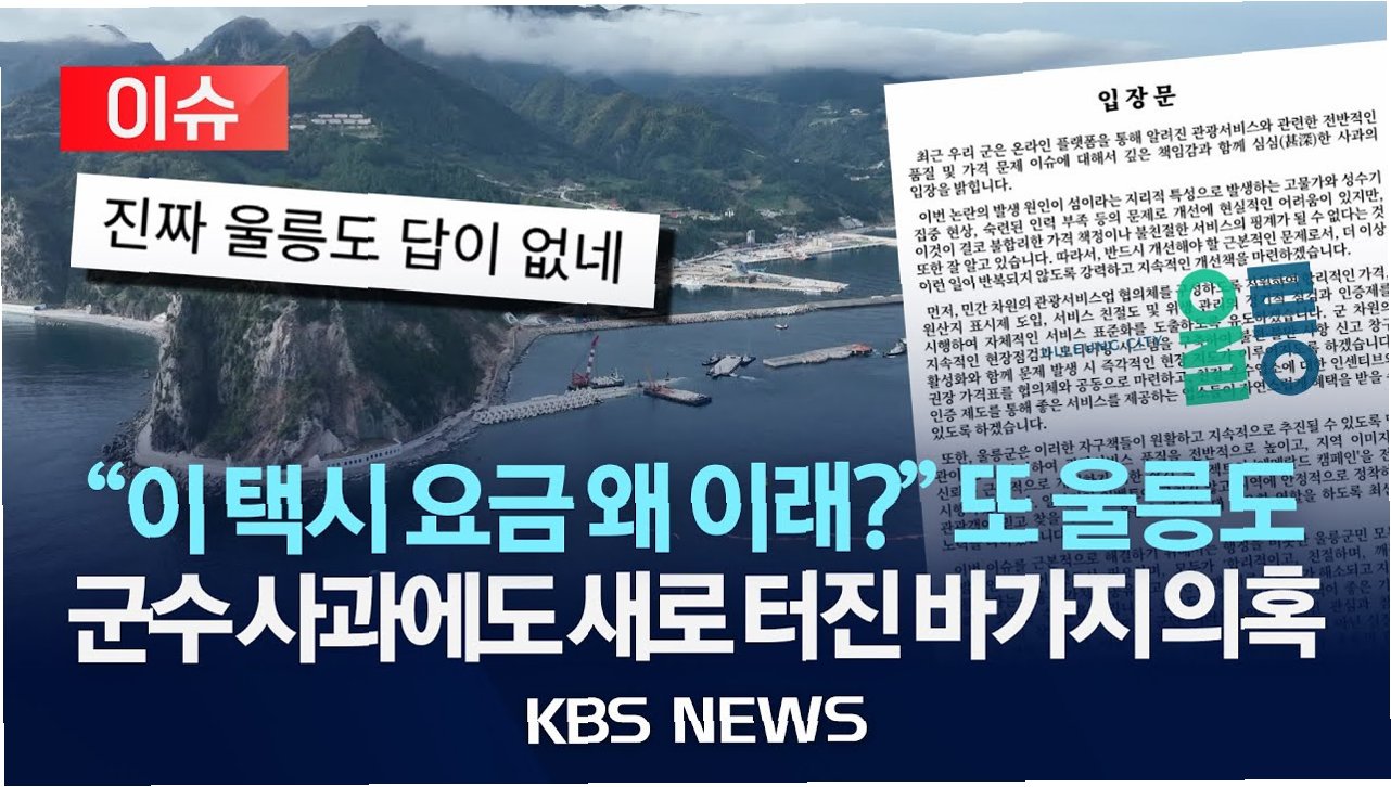 울릉도는 최근 비계 삼겹살에 이어 택시 바가지 요금 논란까지 겹치며 관광 이미지에 타격을 입었습니다. 투명한 요금 체계 확립, 관광객 중심의 서비스 개선, 강력한 제재 조치를 통해 신뢰를 회복하고, 다시 한번 관광객들의 사랑을 받는 울릉도로 거듭나야 합니다.