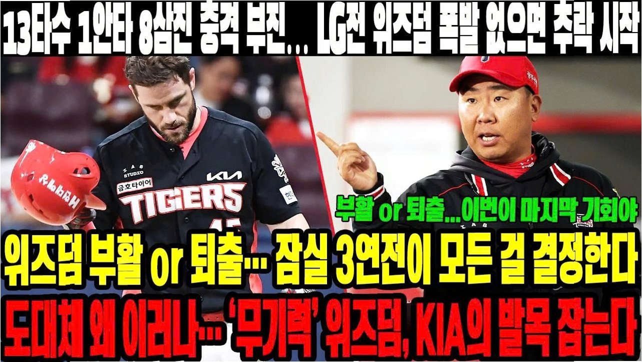 KIA 타이거즈의 외국인 타자 패트릭 위즈덤이 극심한 부진에 빠지면서 팀 내 신뢰를 잃어가고 있습니다치명적인 실책과 9회 대타 교체라는 이례적인 상황까지 발생하며, 이범호 감독의 단호한 결단이 내려졌습니다.