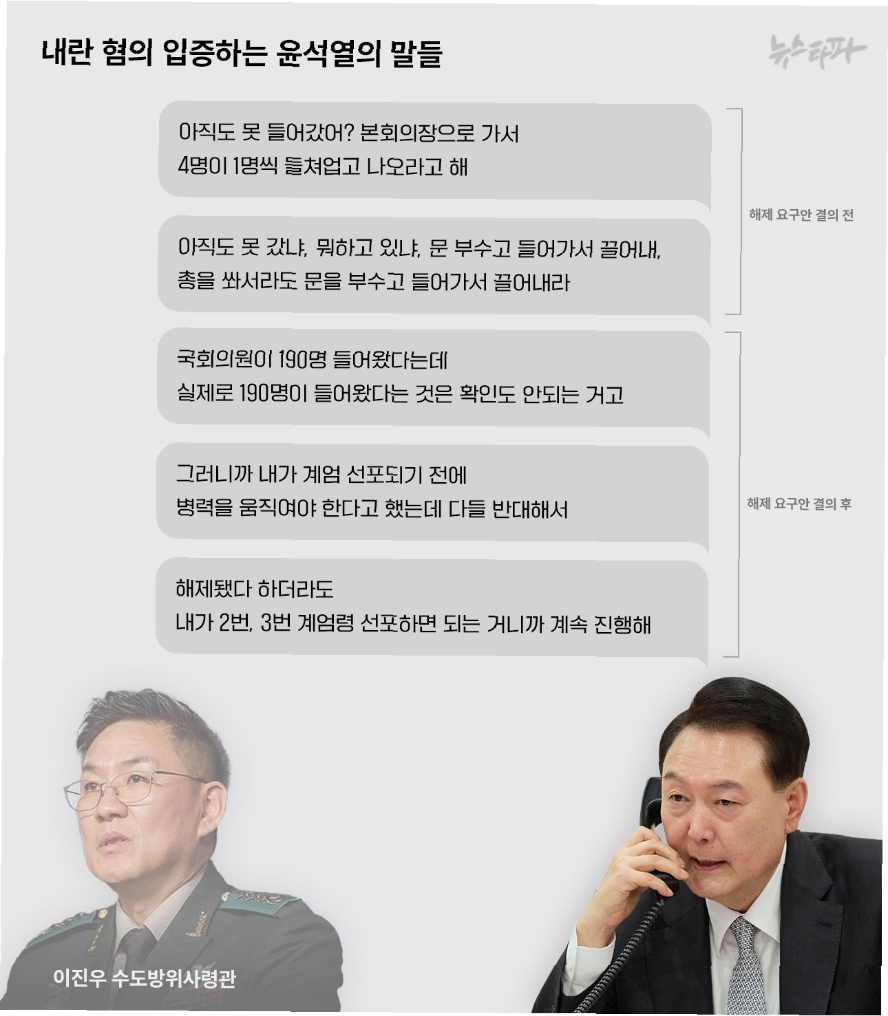 A.두 사람이 계엄 문건을 '구경도 못했다'고 주장하는 것에 대해, 자신이 직접 문건을 전달했음을 밝히며 진실을 밝히기 위함입니다.