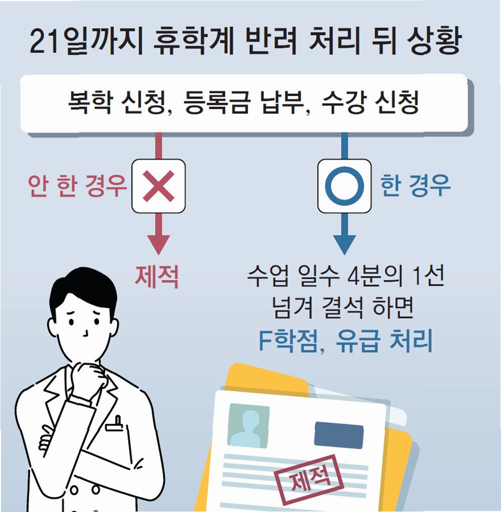 A.1학기 수업 불참자에 대한 유급 및 제적 조치는 사실상 무력화되었습니다. 유급 대상자들은 2학기 복학이 허용되었고, 제적 처리는 학교장 재량에 맡겨졌습니다.