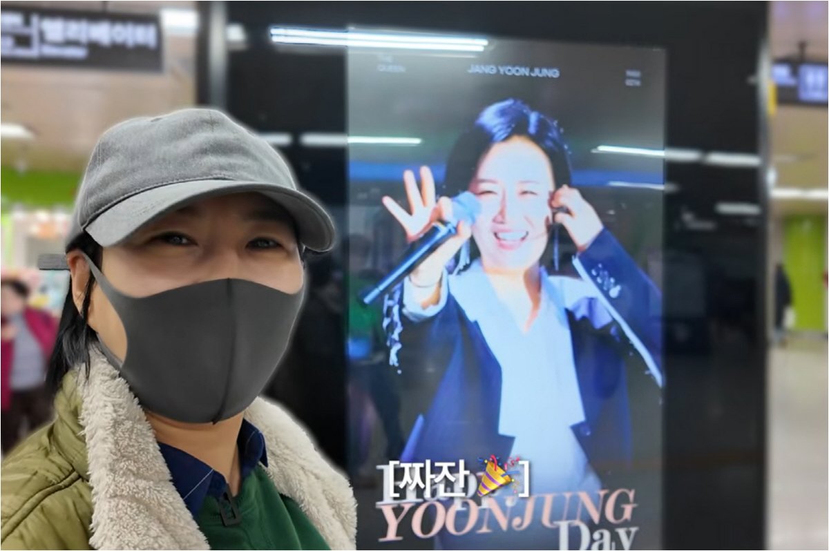 장윤정은 비 오는 날 합정역을 찾아 팬들이 투표로 만든 자신의 생일 축하 광고를 직접 확인했습니다. 2월 생일인 연예인 팬들이 투표 1위를 하면 지하철역 광고판에 생일 축하 광고가 걸리는 시스템에 대해 설명하며, 광고를 기다리는 설렘을 표현했습니다. 마침내 자신의 사진이 광고판에 등장하자 "야, 야 어떡해"라며 놀라움을 감추지 못했습니다. 그녀는 "아직도 제가 유명인인 게 가끔 실감이 안 날 때가 많다"며 지하철역 광고판에 자신의 사진이 있는 것이 신기하다고 소감을 밝혔습니다.