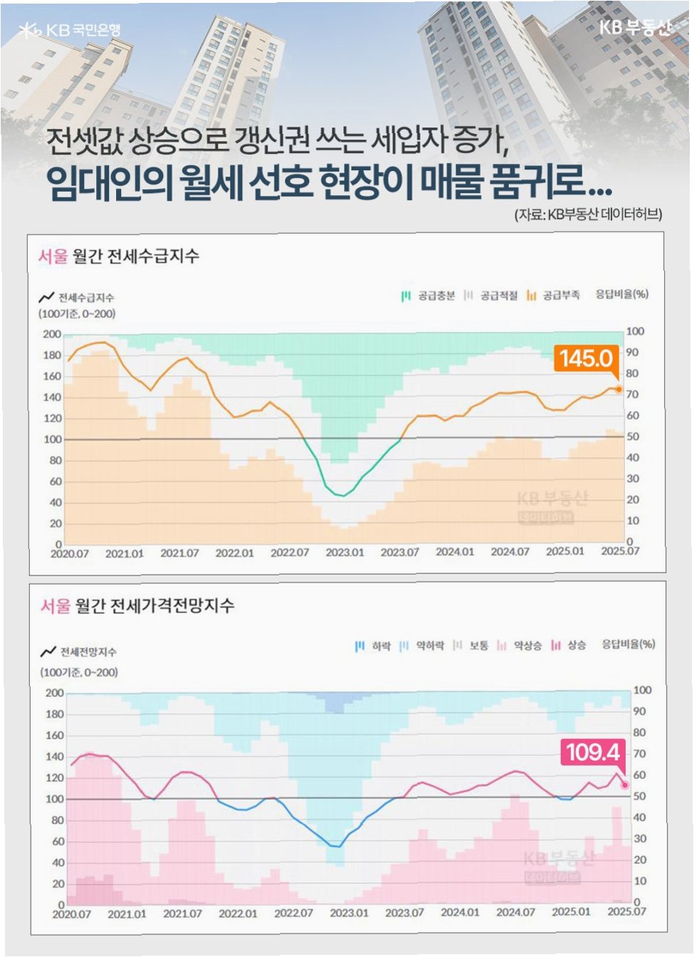 부족한 주택 공급 역시 전셋값 상승을 부추기는 요인입니다. 가을 이사철의 영향이 줄어들었음에도 불구하고, 학군 등을 중심으로 임대 수요는 여전히 높은 수준을 유지하고 있습니다. KB부동산에 따르면, 9월 4주 서울 아파트 전세수급지수는 154.41로, 2021년 10월 이후 4년 만에 최고치를 기록했습니다. 지수가 100보다 높다는 것은 매수자가 많다는 의미로, 그만큼 전세 매물 부족 현상이 심화되고 있다는 것을 보여줍니다.
