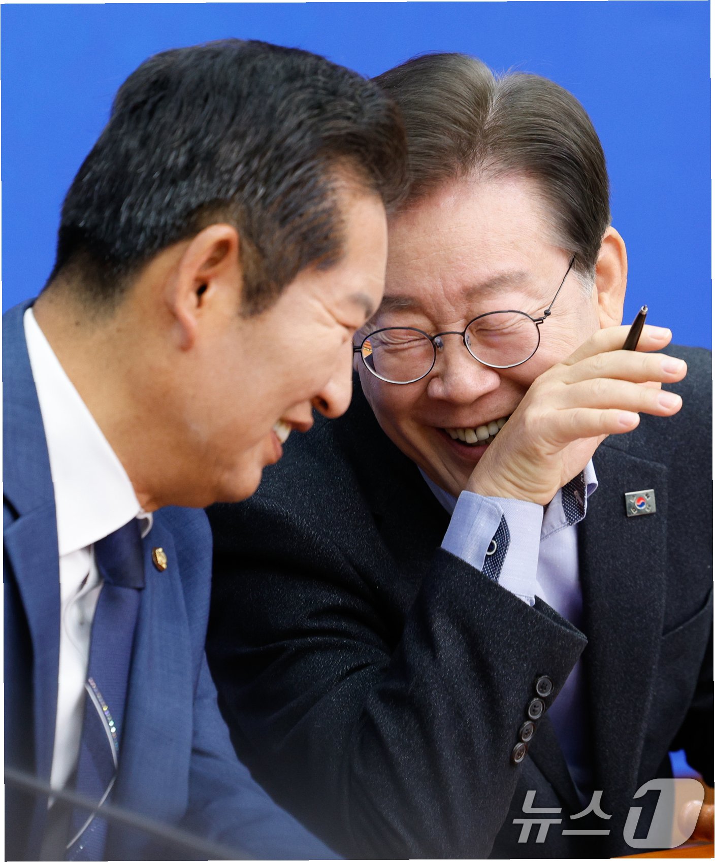 아울러 정 대표는 앞서 한미 관세협상 타결과 관련해 전날(29일) 밤 박수현 수석대변인을 통해 “관세협상 타결은 대한민국 외교사에 길이 빛날 금자탑”이라고 밝혔다.