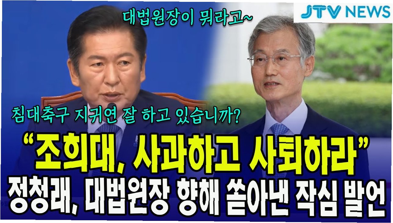 민주당 정청래 대표는 4년 전 국민의힘의 행태를 지적하며, 당시 상황을 담은 영상을 공개했습니다그는 국민의힘이 김명수 당시 대법원장의 탄핵을 추진하려 했던 점을 언급하며, 현재의 대법원장 사퇴 요구는 '내로남불'이라고 비판했습니다. 정 대표는 당시 국민의힘이 대법원까지 찾아가 항의하는 등 거친 행동을 보였다는 점을 강조하며, 국민의힘의 이중적인 태도를 지적했습니다.
