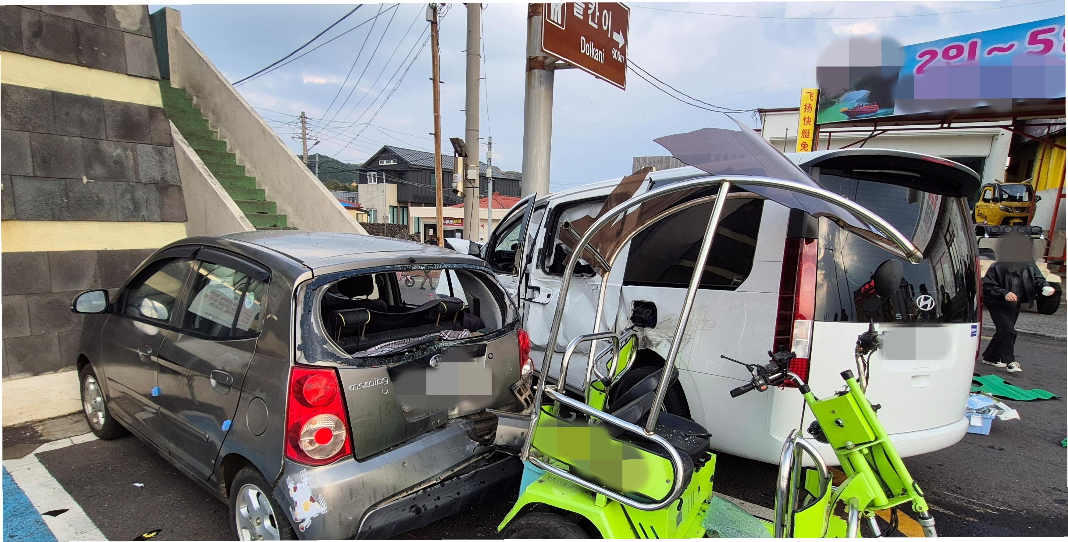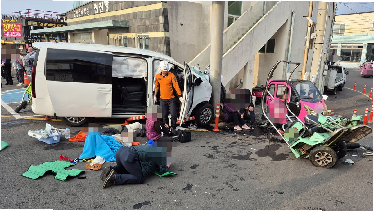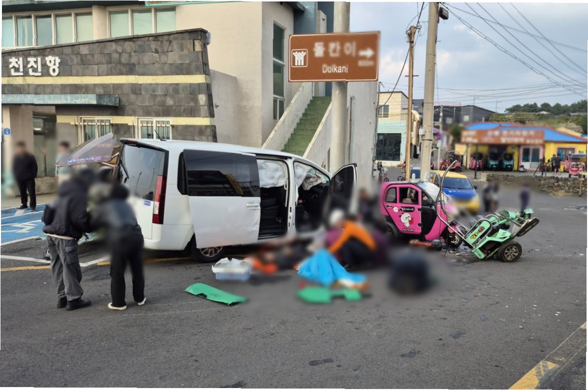사고는 24일 오후 2시 47분께 제주시 우도면 천진항에서 발생했습니다. 60대 A씨가 몰던 승합차는 도항선 대합실 옆 도로표지판 기둥을 들이받았습니다. 사고 당시 현장은 아수라장이 되었고, 승합차에 부딪힌 관광객들은 큰 부상을 입었습니다. 특히 2명의 관광객은 심정지 상태로 발견되어, 소방헬기와 닥터헬기를 통해 급히 병원으로 이송되었습니다. 다행히 한 명은 자발순환회복했지만, 나머지 피해자들의 건강 상태는 여전히 위태로운 상황입니다.
