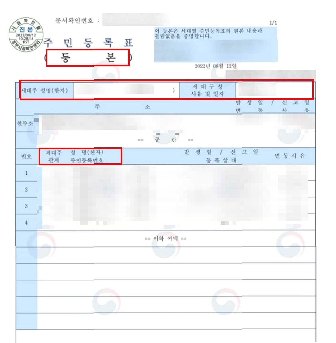 주민등록등본, '세대원' 표기로 재혼가정 사생활 보호 강화