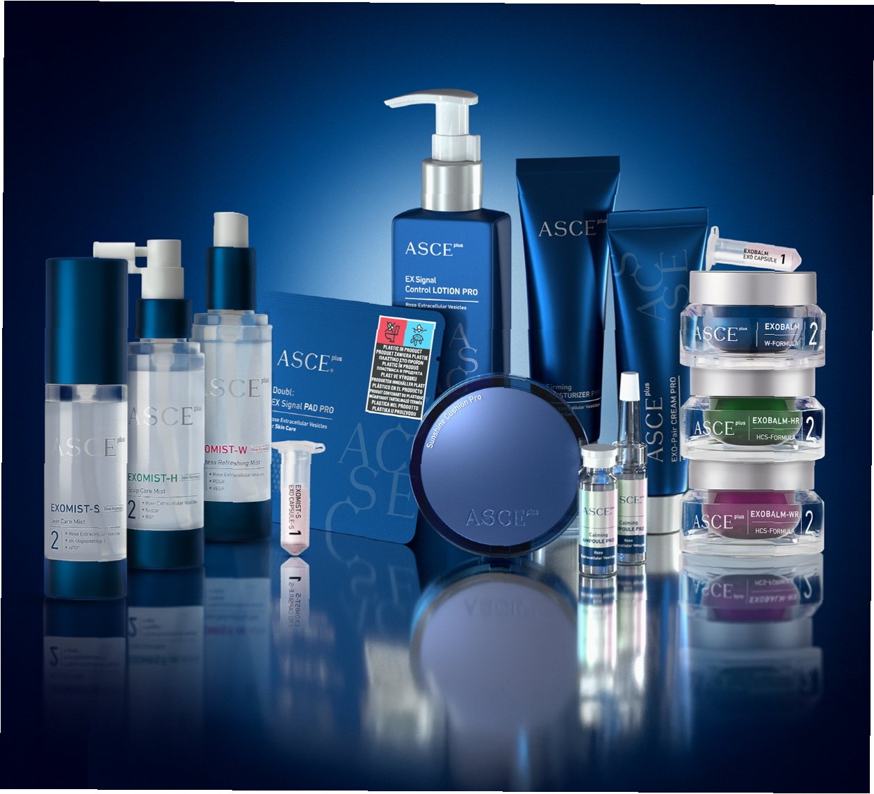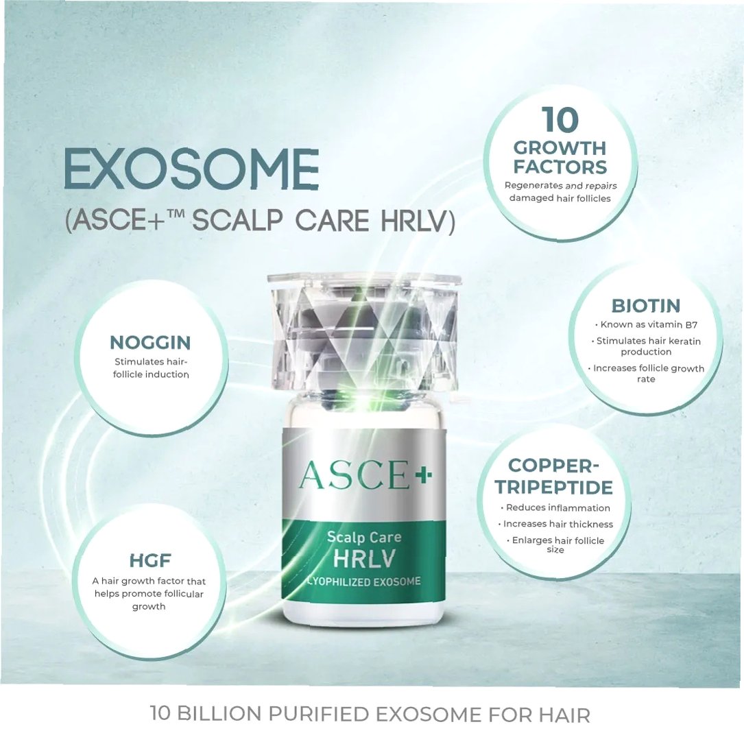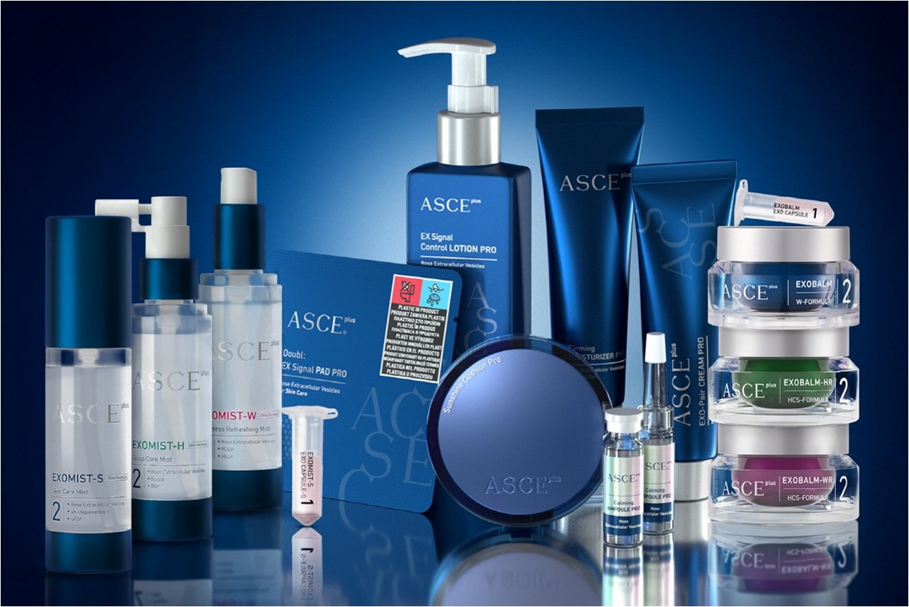 A.ASCE플러스는 엑소코바이오의 엑소좀 기술을 기반으로 개발된 재생 에스테틱 제품입니다. 탈모 방지, 피부 개선 등 다양한 효과를 제공하며, 일반 화장품으로도 출시될 예정입니다.