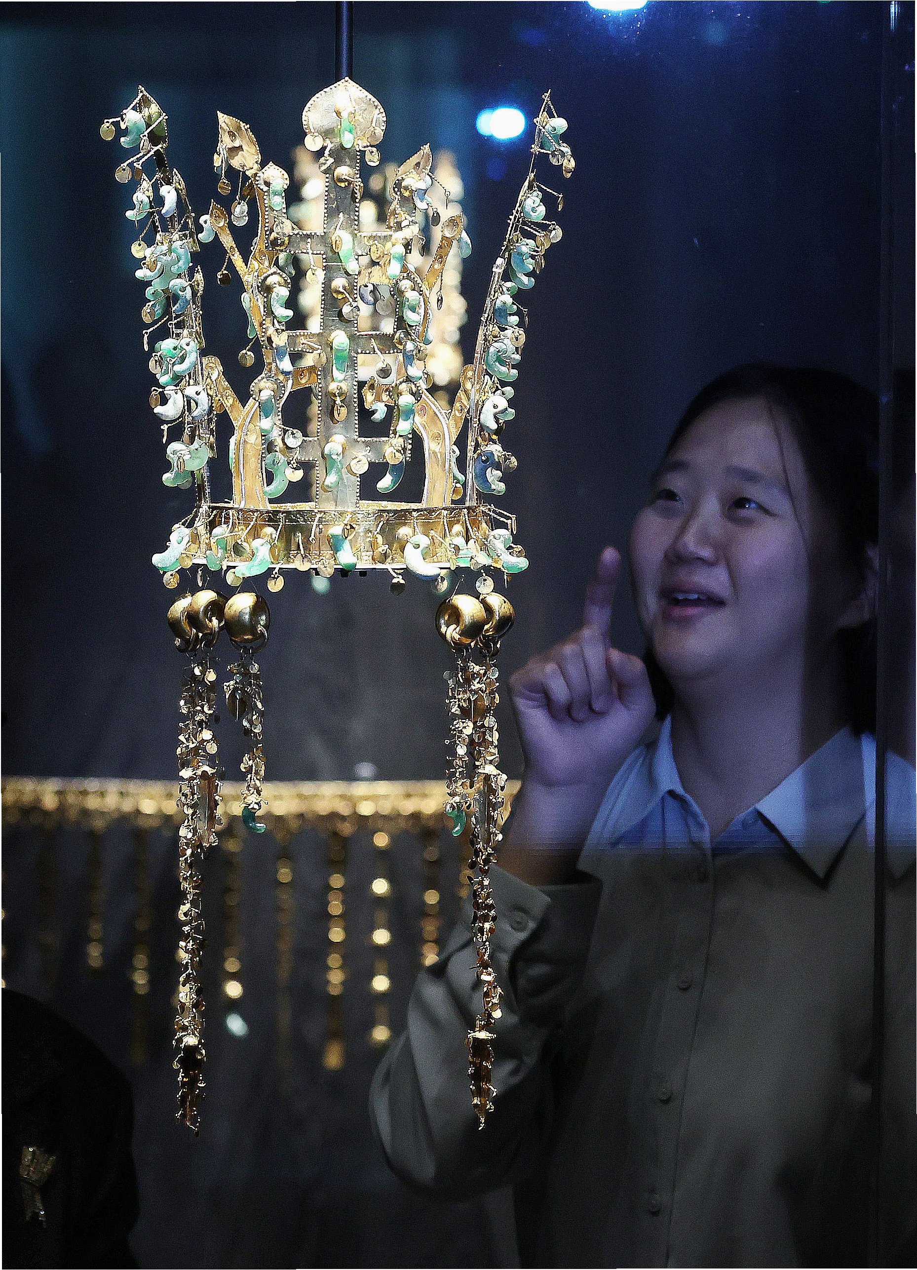 A.트럼프 대통령의 '황금 사랑' 취향을 고려하고, 한국의 전통적인 아름다움을 알리기 위해 신라 금관 모형을 선택했습니다.