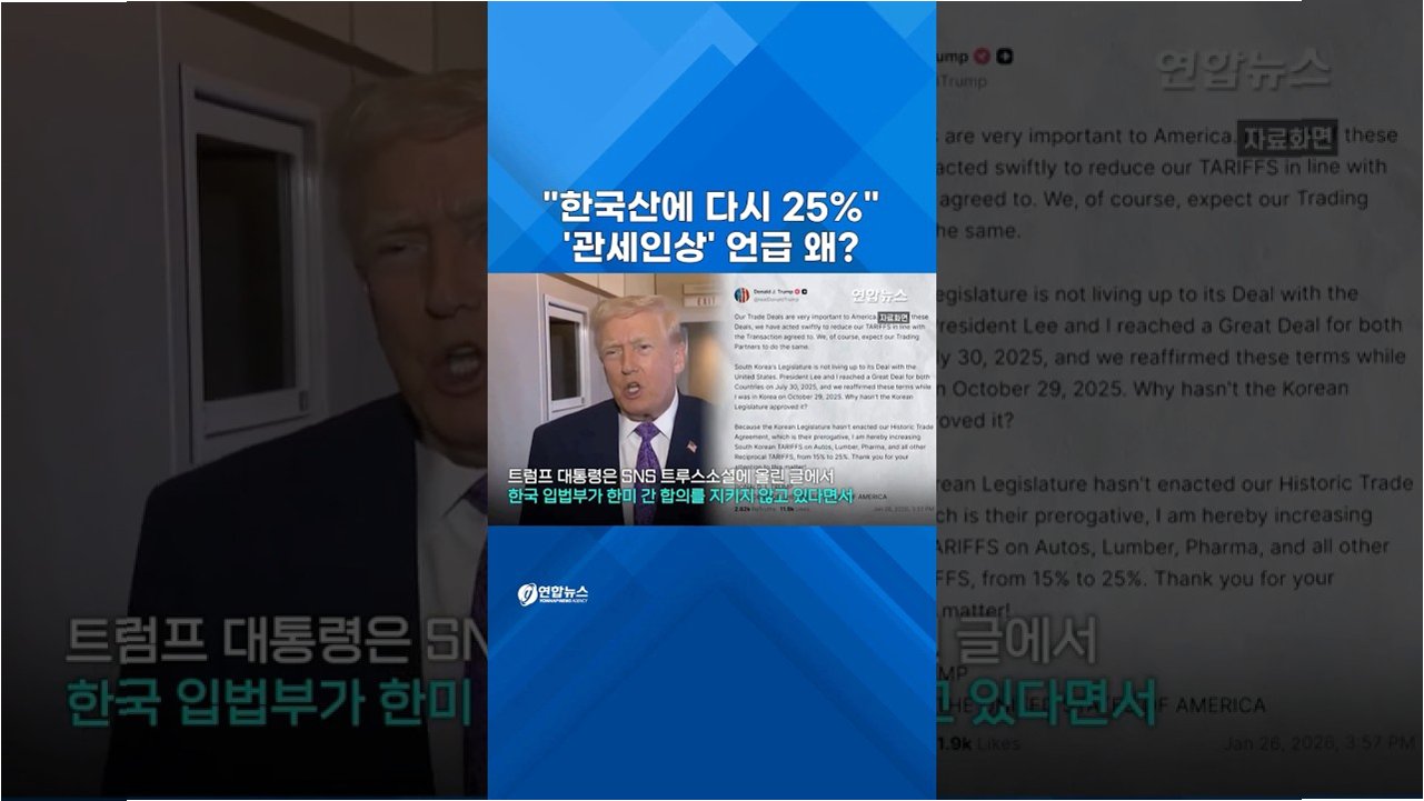 트럼프 대통령, 한국산 제품 관세 25% 인상 시사
