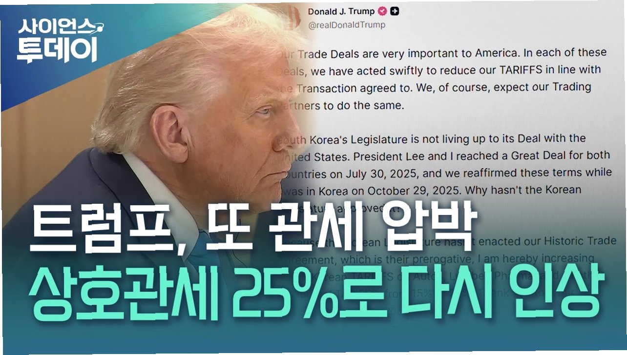 도널드 트럼프 미국 대통령이 한국 국회가 무역협정 이행에 소극적이라며 한국산 자동차 및 모든 제품에 대한 상호 관세를 현행 15%에서 25%로 인상하겠다고 예고했습니다. 이는 양국 간의 무역 관계에 큰 파장을 일으킬 수 있는 발언으로, 정부는 긴급 대응책 마련에 나섰습니다.