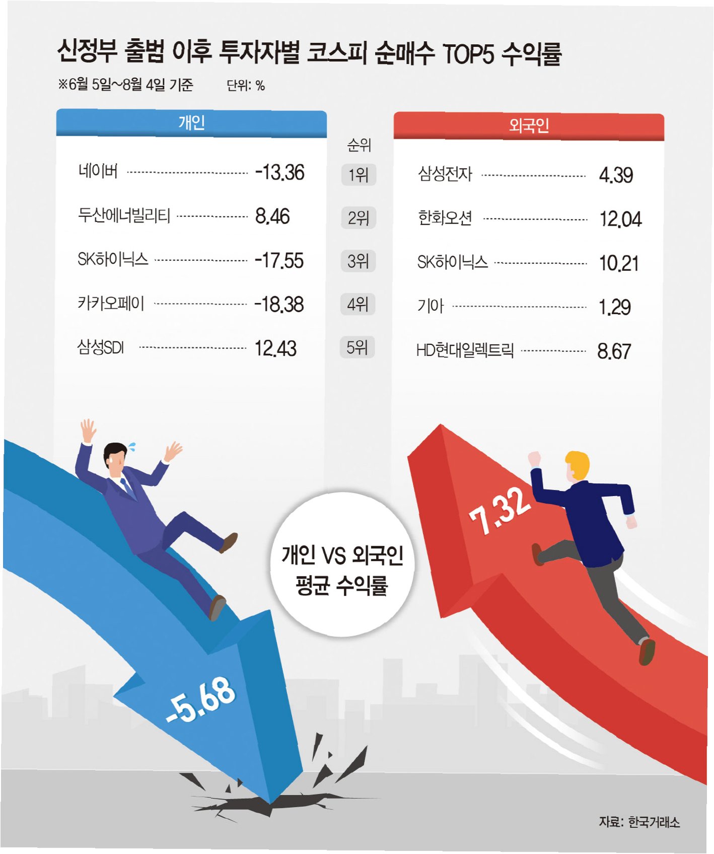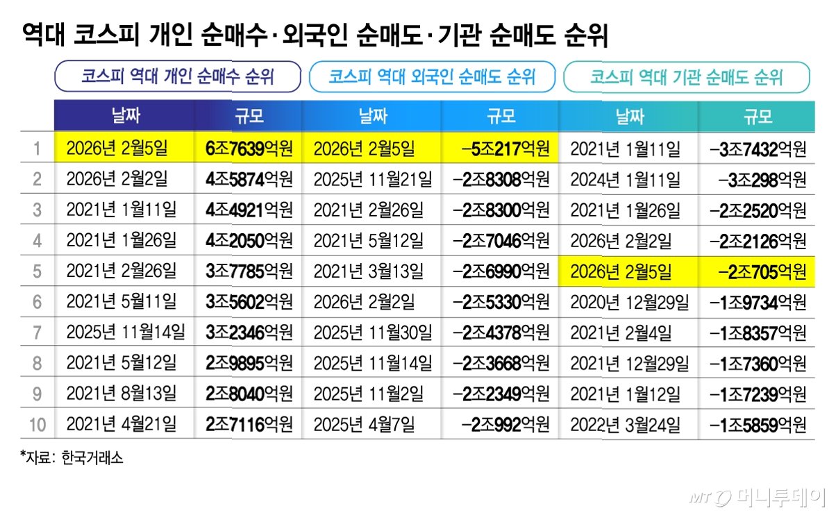 A.개인 투자자들은 2조 1000억 원을 순매수하며 외국인의 3조 3000억 원 순매도 공세를 상당 부분 상쇄했고, 코스피 지수가 5000선을 회복하는 데 결정적인 역할을 했습니다.