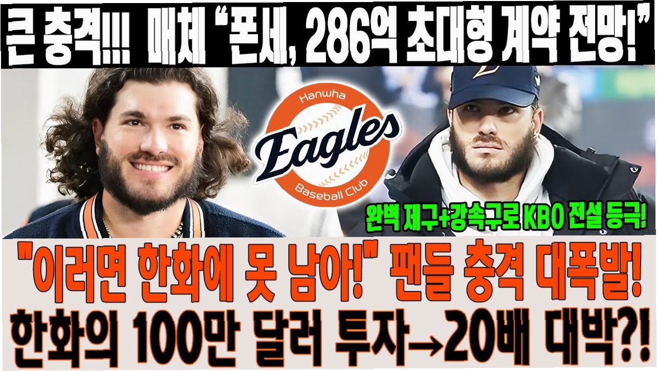 A.폰세의 선택에 따라 달려 있습니다. 한화는 폰세에게 잔류를 설득하기 위해 노력할 것이지만, MLB의 높은 연봉 제안을 이겨낼 수 있을지는 미지수입니다.
