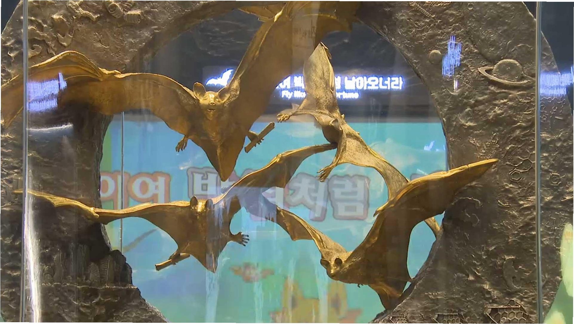 A.멸종된 것으로 알려졌던 황금박쥐가 함평 대동면에서 집단 서식하는 것이 확인되어 이를 기념하기 위해 만들어졌습니다.