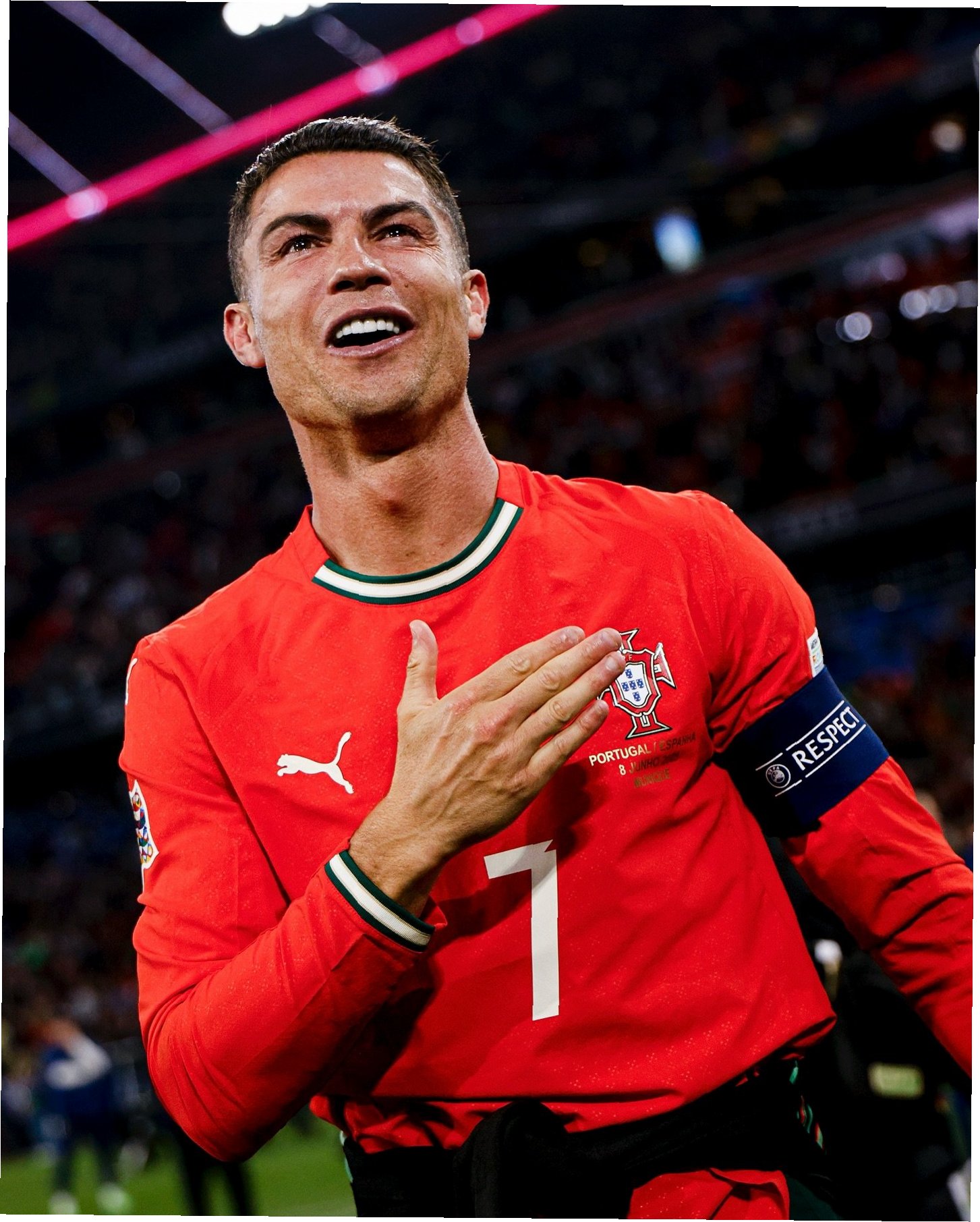호날두는 국가대표팀에서도 엄청난 족적을 남겼습니다. 포르투갈 A매치 최다 출전(225경기), 최다 득점(143골) 기록을 달성하며, 유로 대회 최다 득점(14골), 최다 도움(8개)의 주인공으로 자리매김했습니다. 유로 2016 우승과 네이션스리그 2019, 2025 우승을 달성하며 국민적 영웅으로 떠올랐습니다. 그는 월드컵 우승을 향한 간절한 염원을 품고 있었지만, 아직 그 꿈을 이루지 못했습니다. 2022 카타르 월드컵에서 탈락했을 때 뜨거운 눈물을 흘리는 그의 모습은 많은 이들의 심금을 울렸습니다. 2026 북중미 월드컵에서 그의 마지막 도전을 응원하며, 그의 빛나는 축구 인생에 경의를 표합니다.