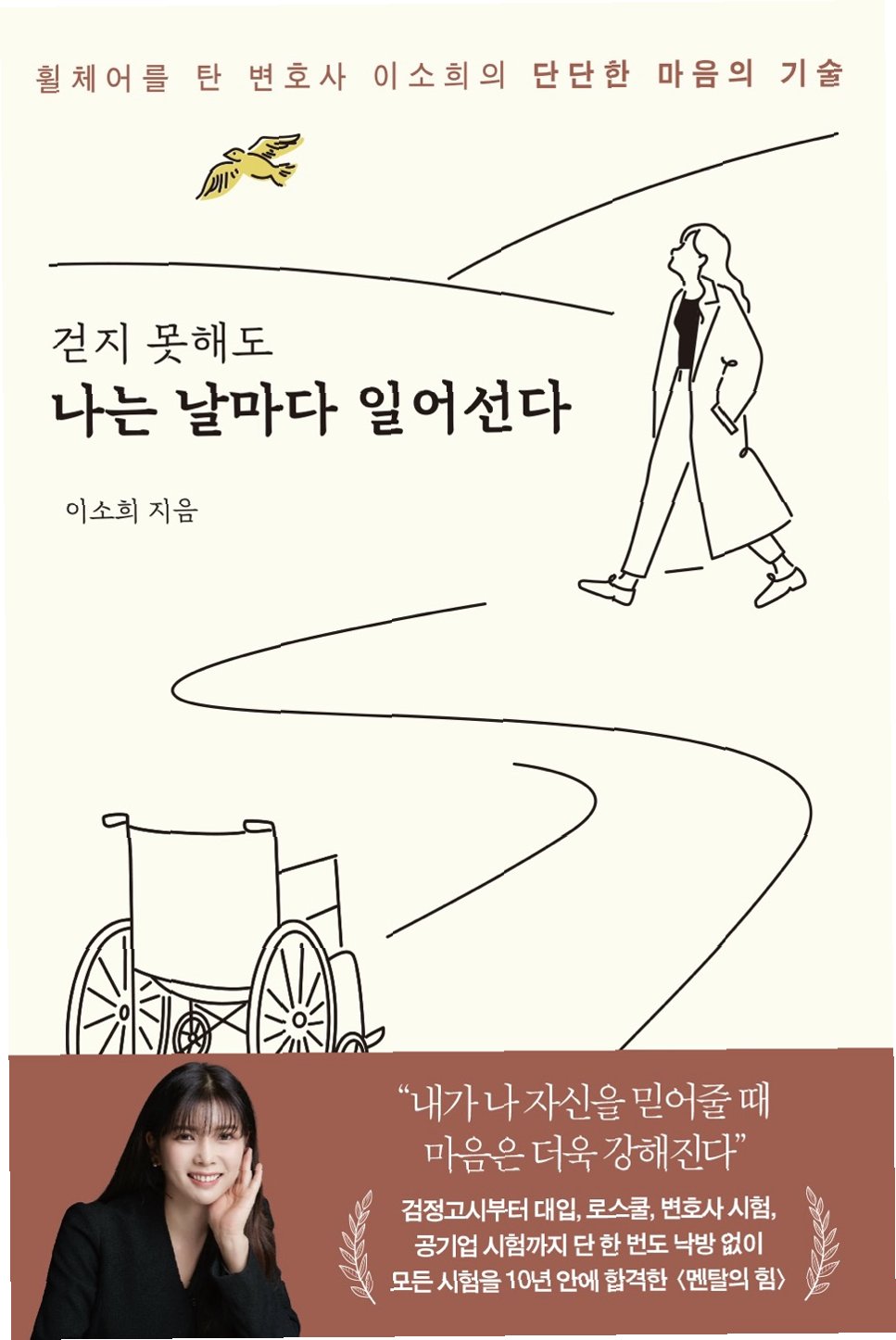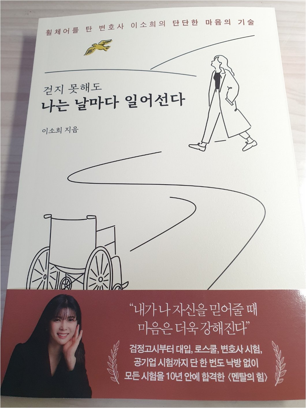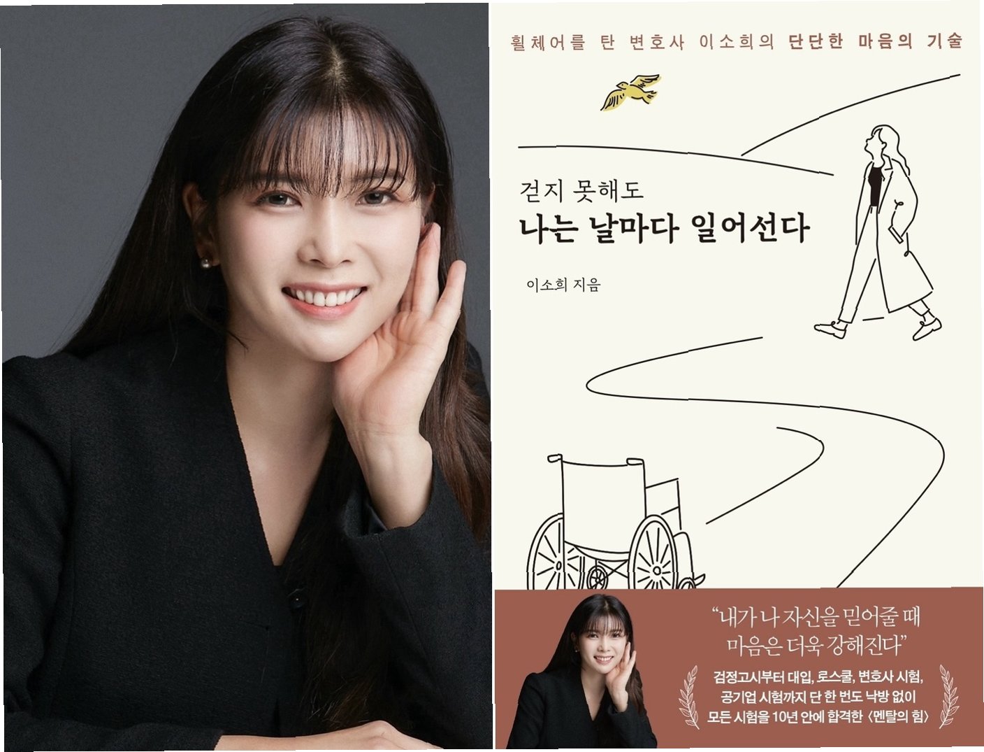 이소희 의원은 자신의 장애 극복기를 담은 책 '걷지 못해도 나는 날마다 일어선다'를 출간했습니다. 책에는 3년간의 학업 중단, 검정고시, 대학 입학, 로스쿨, 변호사시험, 공기업 시험까지 10년 안에 모든 시험을 통과한 그녀의 이야기가 담겨 있습니다.