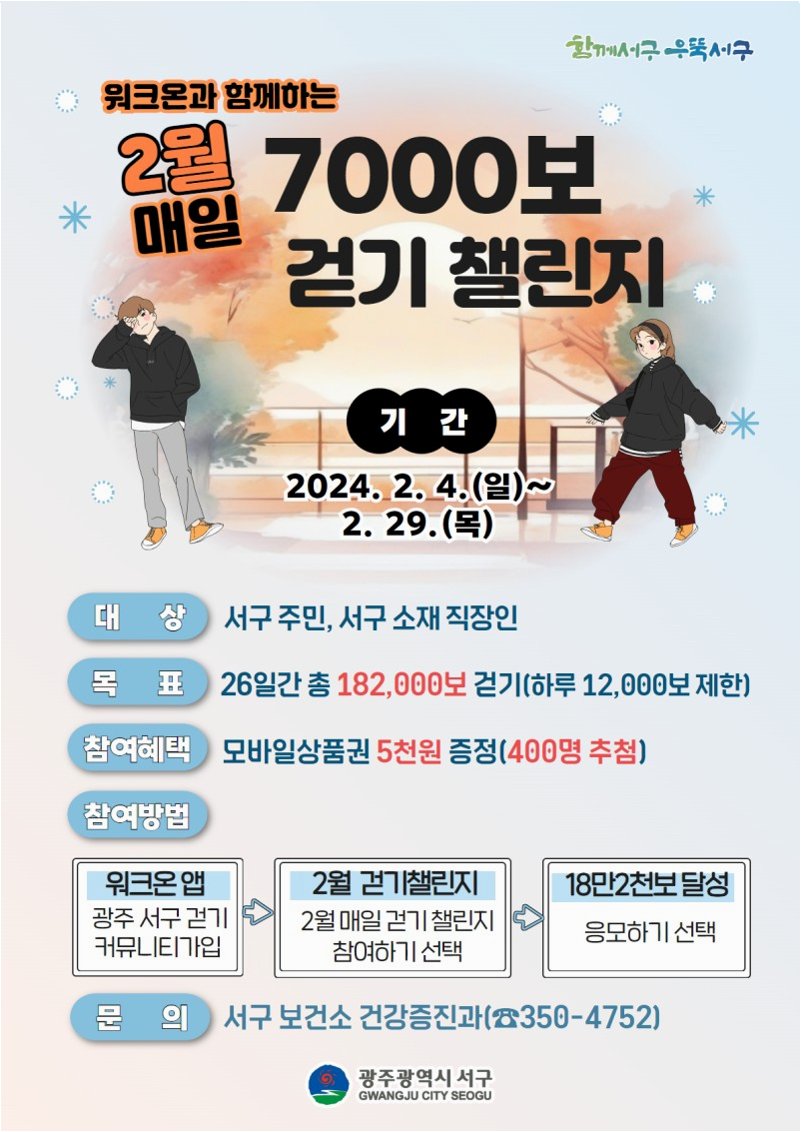 호주 시드니대학교 연구팀은 하루 7000보 걷기가 우리 몸에 놀라운 변화를 가져온다는 사실을 입증했습니다. 연구에 따르면, 7000보를 걸으면 심혈관 질환, 암, 치매, 우울증의 위험을 크게 낮출 수 있습니다. 특히, 심혈관 질환 위험은 25%, 치매는 무려 38%나 감소하는 것으로 나타났습니다. 이제 1만보에 얽매이지 않고, 7000보를 목표로 건강한 삶을 시작해 보세요.