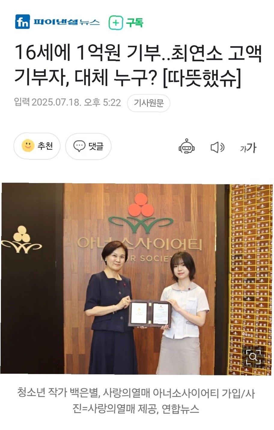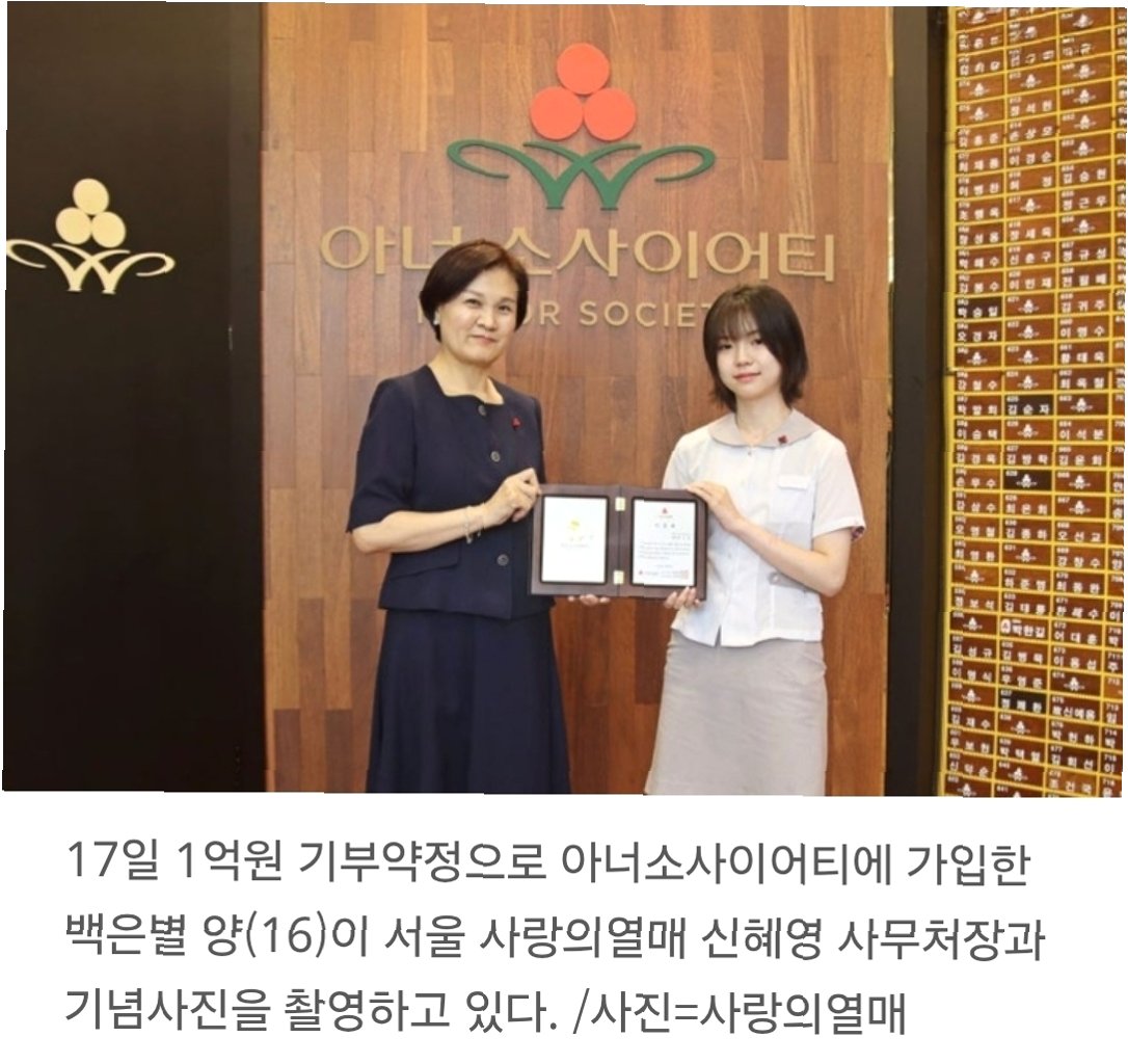백은별 양은 16세의 나이로 1억 원을 기부하며 최연소 아너 소사이어티 회원이 되었습니다. 그녀의 기부는 청소년 작가로서의 성공을 사회에 환원하는 아름다운 실천이며, 많은 이들에게 긍정적인 영감을 주고 있습니다. 백은별 양의 따뜻한 마음과 용기는 우리 사회를 더욱 밝게 만들 것입니다.