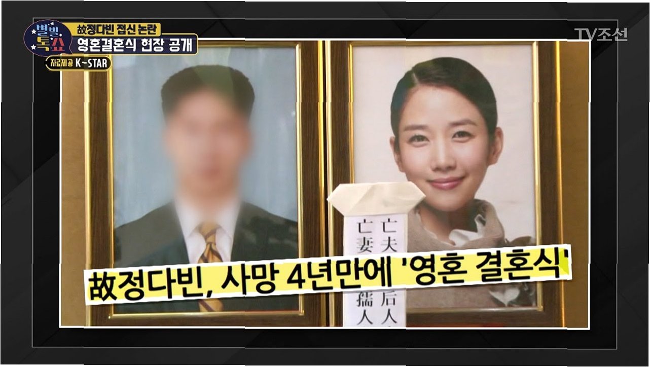 A.미혼으로 세상을 떠난 故정다빈의 넋을 위로하고 싶다는 어머니의 뜻에 따라 진행되었습니다.