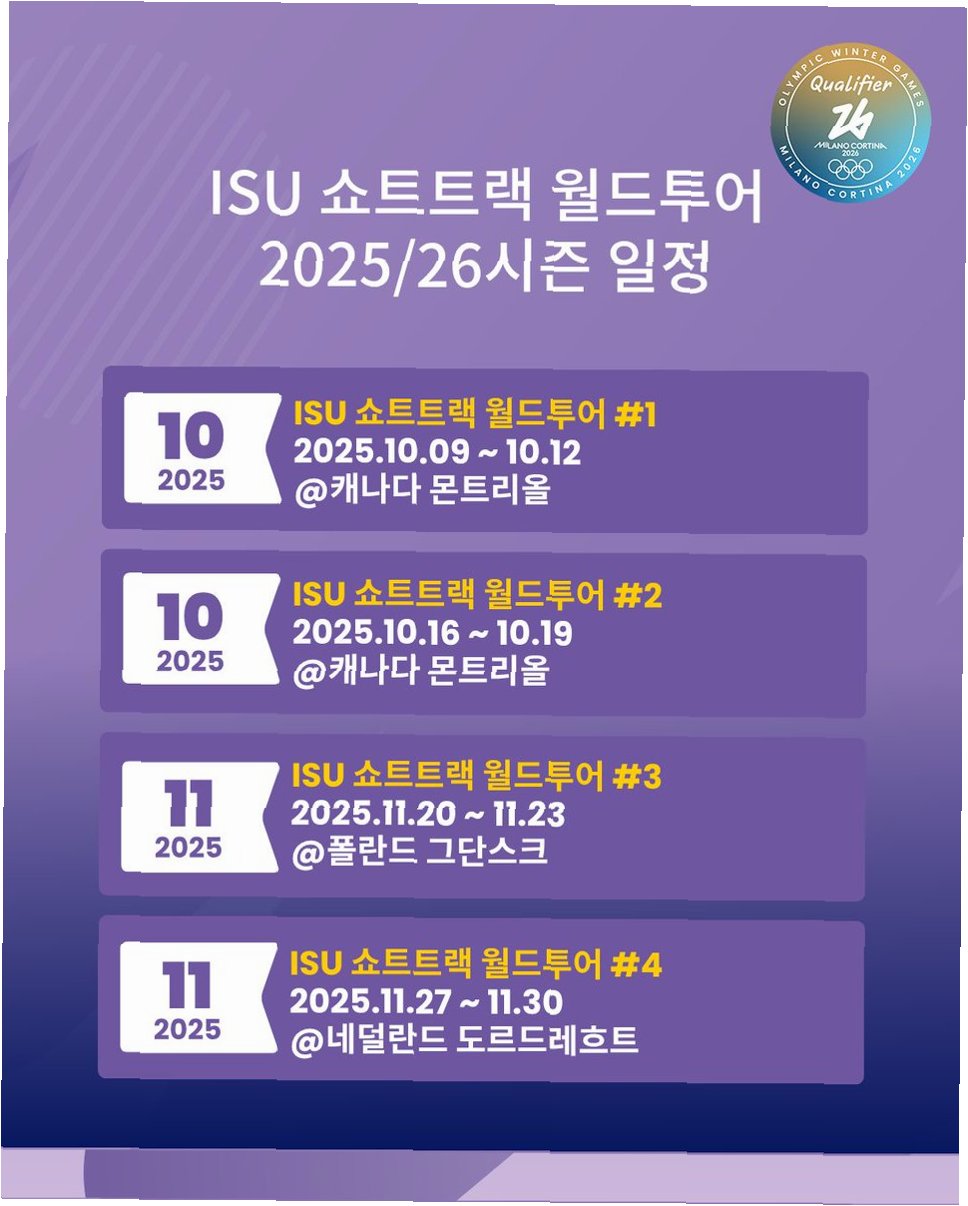 국제빙상경기연맹(ISU)은 2026 밀라노·코르티나담페초 동계올림픽 쿼터 결정 결과를 발표했습니다. 쿼터는 몬트리올(캐나다), 그단스크(폴란드), 도르트레흐트(네덜란드)에서 개최된 ISU 쇼트트랙 월드투어 1~4차 대회의 성적을 합산하여 결정되었습니다. 각 국가는 500m, 1000m, 1500m 등 개인전 종목에서 최대 3장의 출전권을 획득할 수 있으며, 이 점이 한국 쇼트트랙 대표팀의 전략 수립에 중요한 영향을 미쳤습니다.