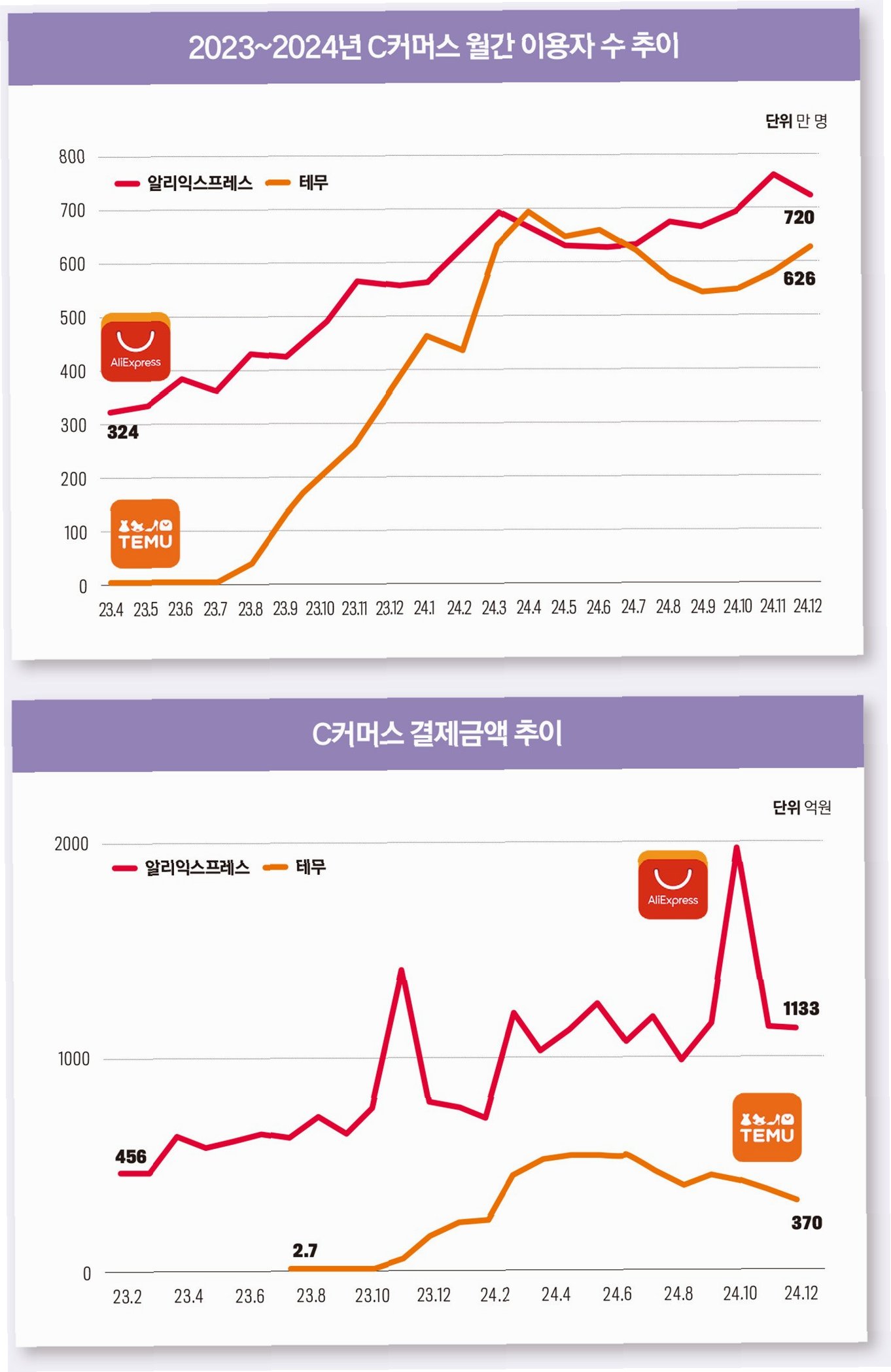 이처럼 테무·알리익스프레스 등 중국 이커머스 플랫폼을 이용하는 2030세대 소비 규모가 확대되는 추세다. 기존에는 1만원 이하 저가 아이템을 주로 구매하는 수준이었지만 이제는 5만원 이상 지불하는 소비자가 늘며 구매 금액이 높아지는 추세다. 젊은층 중심으로 플랫폼에 대한 친밀도가 높아지고 이용 경험이 쌓이면서 중저가 패션 시장에서 C커머스(중국계 이커머스)의 존재감이 커지고 있다.
