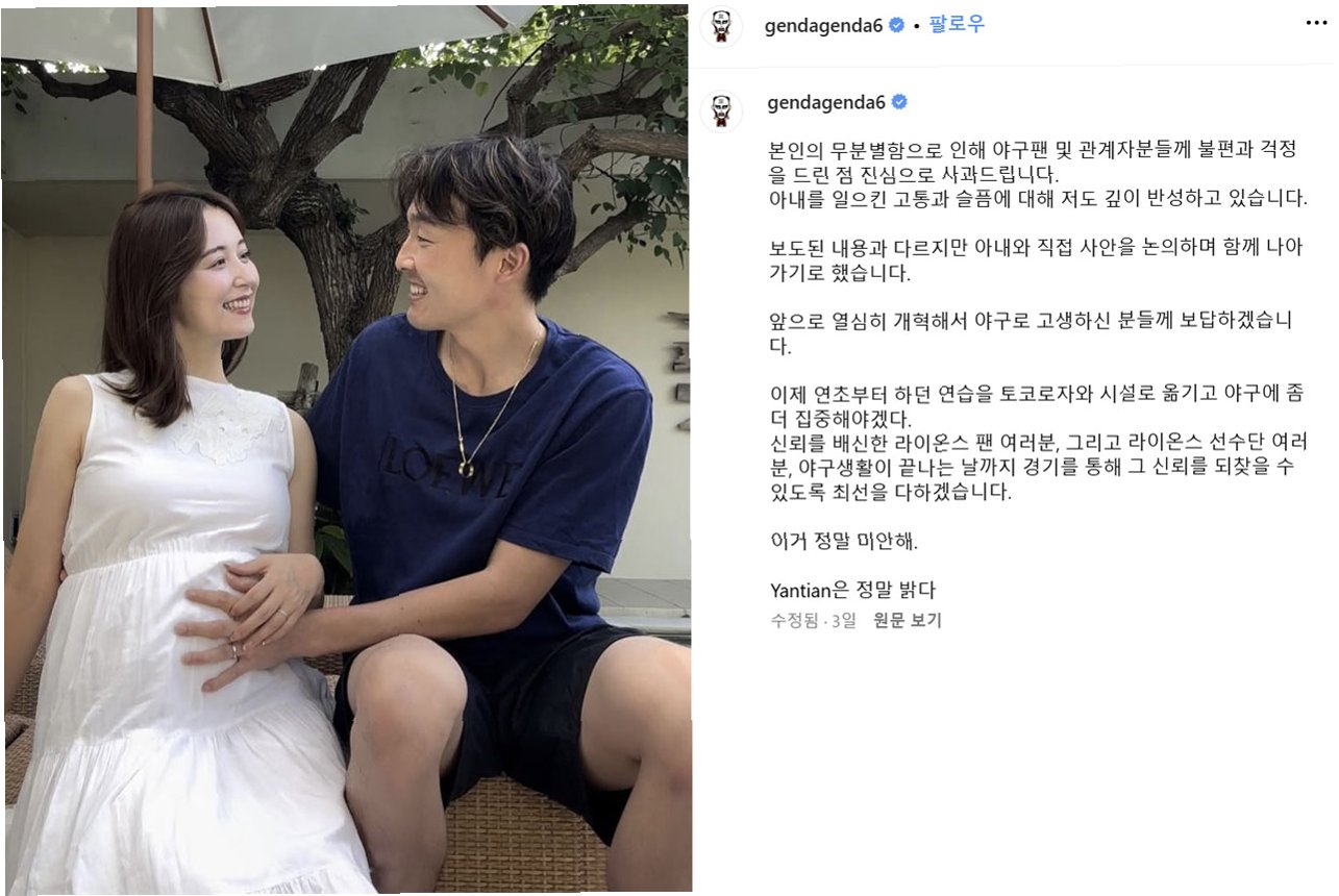 겐다는 자신의 SNS를 통해 야구 팬들과 관계자들에게 사과하며, 아내에게도 깊이 반성하는 모습을 보였습니다. 그는 아내와 대화를 통해 관계를 회복하고, 야구로 팬들에게 보답하겠다는 의지를 밝혔습니다. 하지만 팬들의 시선은 여전히 싸늘했고, 그의 진심을 의심하는 목소리가 높았습니다.