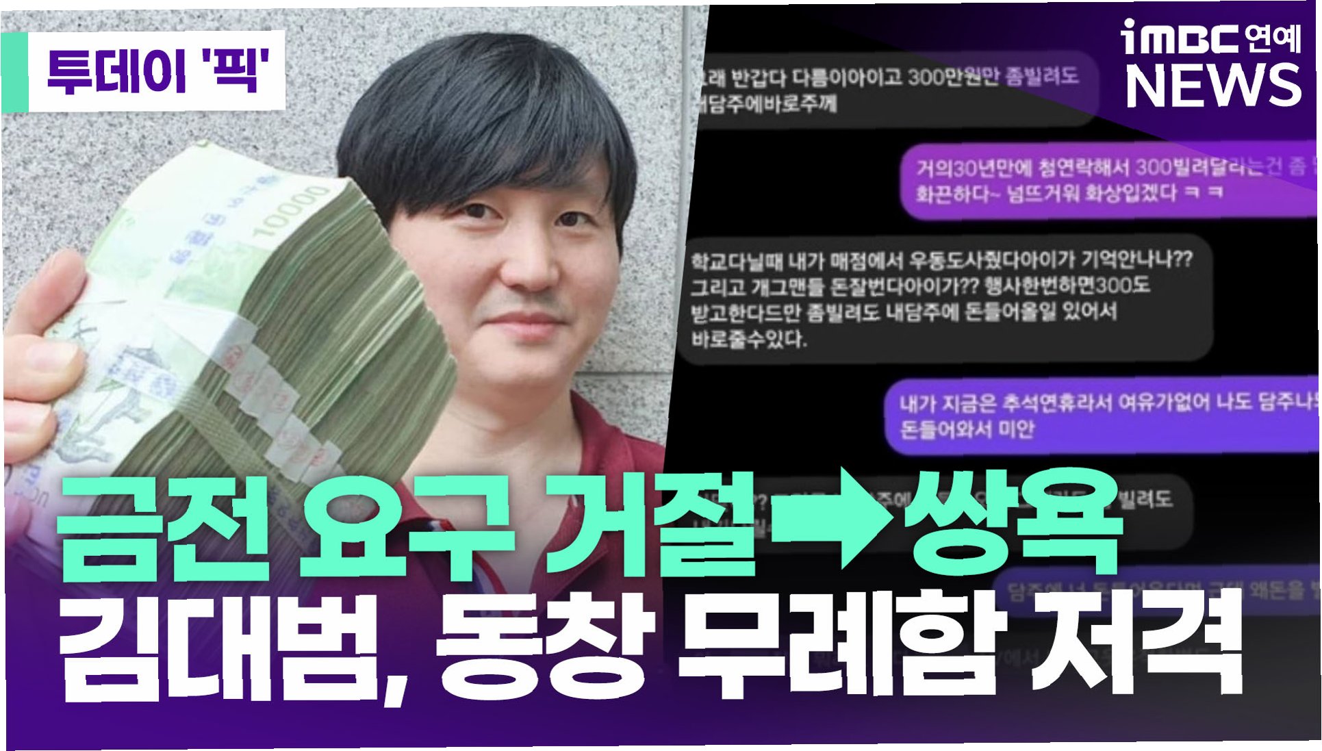 개그맨 김대범이 30년 만에 연락한 동창에게 300만원을 빌려달라는 요청을 받고 거절하자, 동창이 욕설과 비난으로 답한 사건. 금전 거래와 인간관계의 민낯을 보여주는 사례로, 돈 문제로 인한 관계의 변질을 경고합니다.