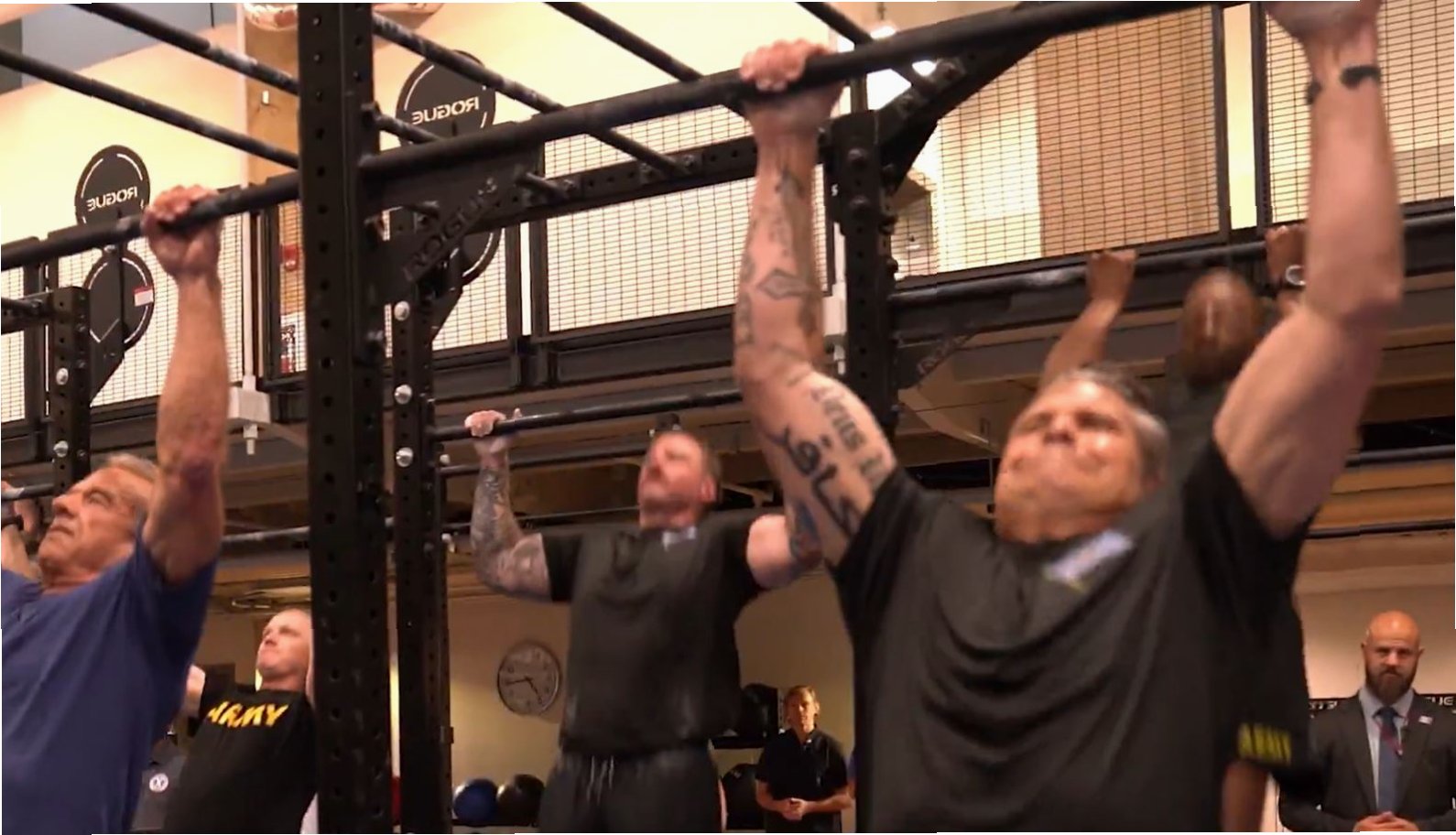 이번 챌린지에서 가장 먼저 도전에 나선 것은 보건복지부 장관과 국방부 장관이었습니다. 특히 71세의 로버트 F. 케네디 주니어 보건복지부 장관은 5분 48초 만에 턱걸이 50개와 팔굽혀펴기 100개를 성공하며 모두를 놀라게 했습니다. 45세의 피트 헤그세스 국방부 장관 역시 5분 25초 만에 미션을 완수하며, 건강한 리더십의 표본을 제시했습니다.