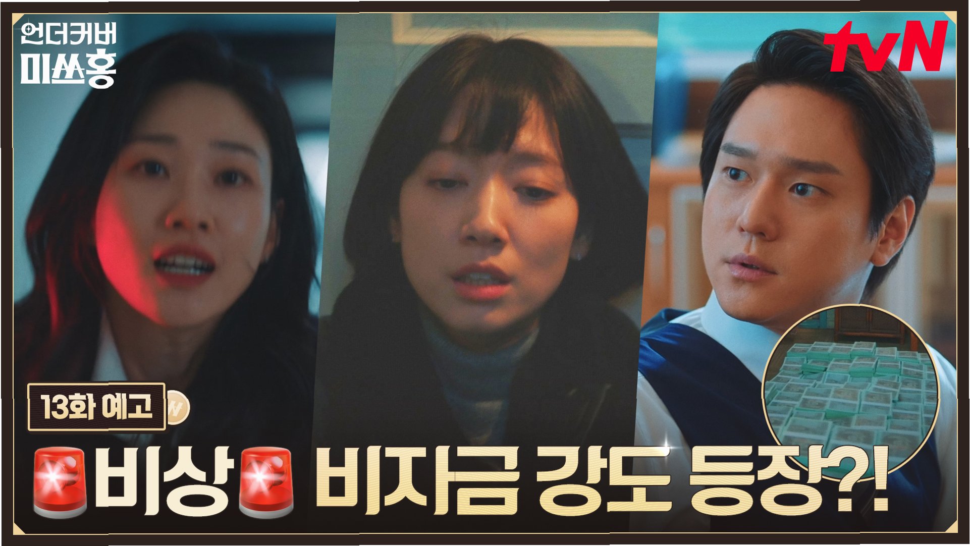 드라마 '언더커버 미쓰홍' 13회에서는 한민증권 상속 경쟁 속 인물들의 관계 변화가 그려집니다. 앞선 방송에서 홍금보(박신혜 분) 팀은 오덕규 상무를 타깃으로 비자금 확보 작전을 성공적으로 수행했습니다. 알벗 오(조한결 분)는 아버지의 입지를 알면서도 홍금보와 협력했고, 알벗 오와 강노라(최지수 분)의 후계 구도 대립은 새로운 국면을 맞았습니다. 김미숙(강채영 분)의 기적적인 회복은 룸메이트들에게 희망을 안겨주었습니다.