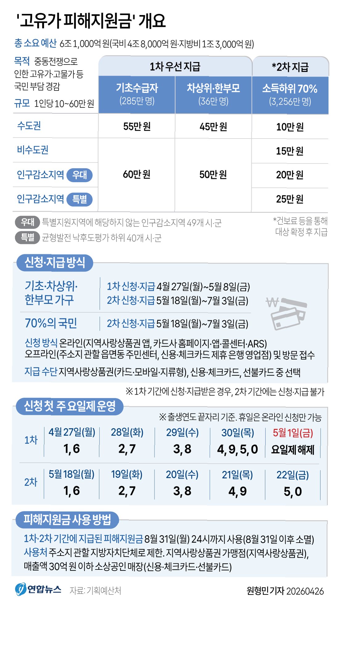 정부가 고유가 부담 완화를 위해 마련한 '피해지원금' 지급이 시작되면서 편의점 및 외식업계의 기대감이 고조되고 있습니다. 중동 전쟁 여파로 인한 고물가와 정부의 물가 안정 압박 속에서 이번 지원금이 침체된 소비 심리를 되살릴 수 있을지 업계의 이목이 집중되고 있습니다. 지원금은 소득 하위 70% 국민을 대상으로 1인당 10만~60만원을 차등 지급하며, 전통시장, 동네마트, 음식점 등 연매출 30억원 이하 소상공인 사업장에서 사용할 수 있습니다. 하지만 백화점, 대형마트, 이커머스 등에서는 사용이 제한되어 편의점과 외식업계에 혜택이 집중될 것으로 보입니다.