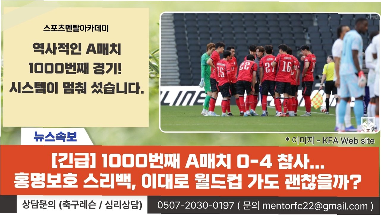 월드컵 본선 직전 단 한 차례의 평가전만을 남겨둔 상황에서, 대표팀은 3백과 4백 전술 모두 확신을 주지 못하고 있습니다. 2014 브라질 월드컵의 재현을 우려하는 목소리도 나오는 가운데, 지금은 극적인 반전보다는 명확한 방향 설정과 선택과 집중이 절실히 필요한 시점입니다. 최소한의 방향성이라도 분명히 세우지 못한다면, 현재의 불안은 본선 무대에서 그대로 드러날 가능성이 큽니다.